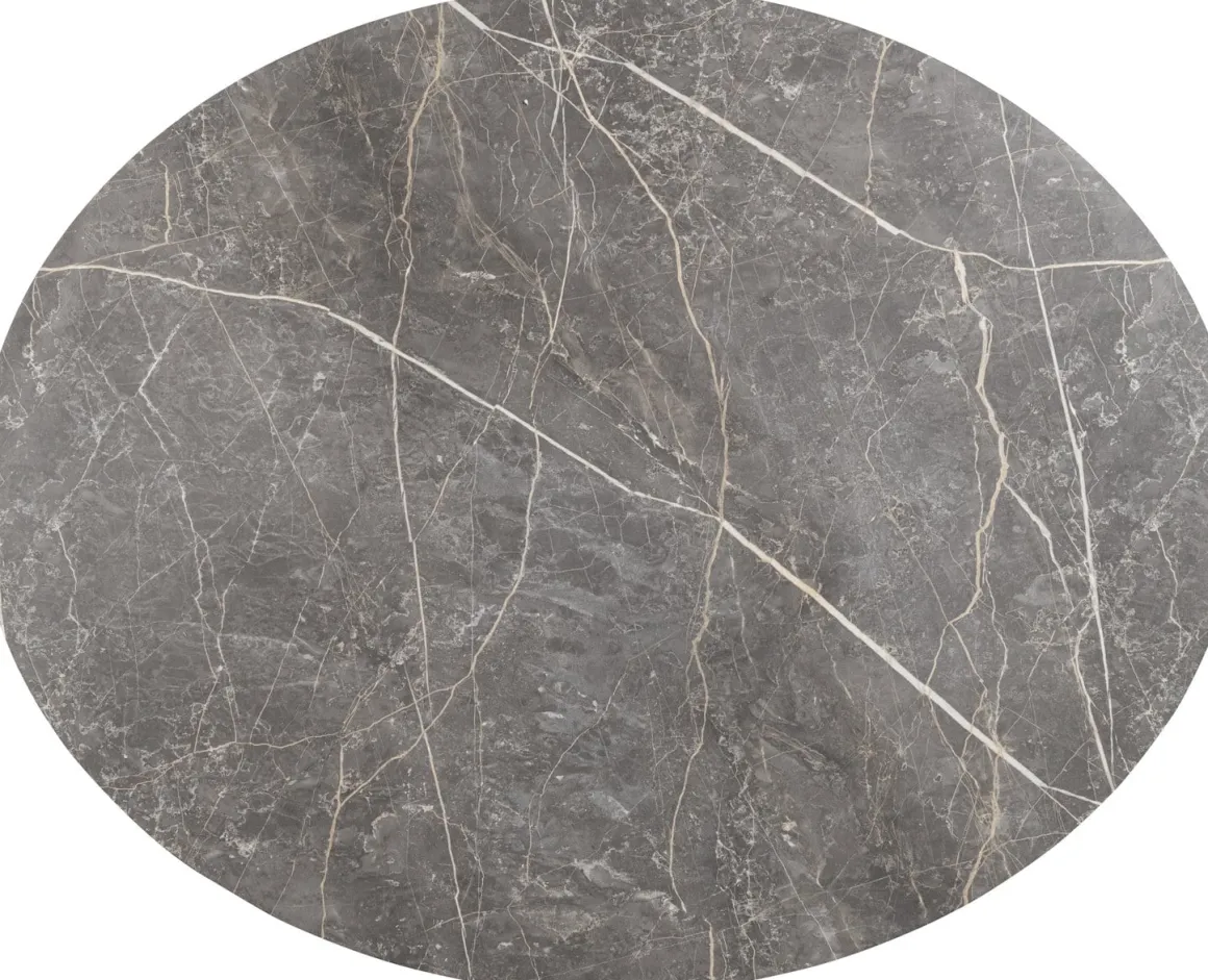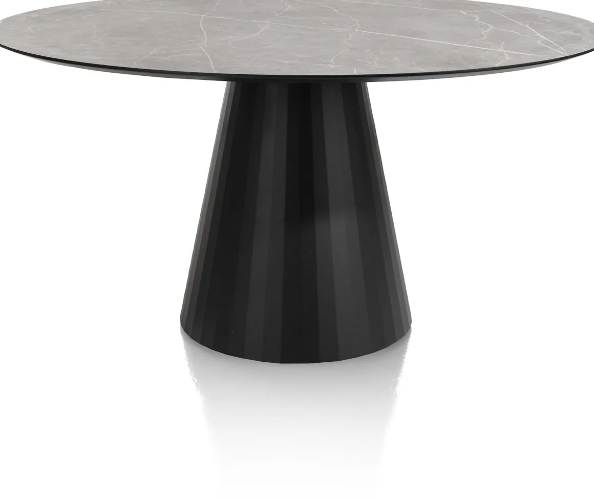 Aan een ronde tafel ervaar je het gezellige moment van samenzijn extra goed. Laat je verrassen door deze moderne (bijna) ronde tafel ARABAX van XOOON. Het warm grijze blad in HPL marmerlook heeft een afmeting van 120 x 150 en staat op een half kegelvormige poot van zwart metaal. ARABAX is populair vanwege zijn klassieke karakter met een moderne touch. Het blad is ook verkrijgbaar in onyx kleur. Zeg maar hallo tegen het natafelen tot in de late uurtjes!