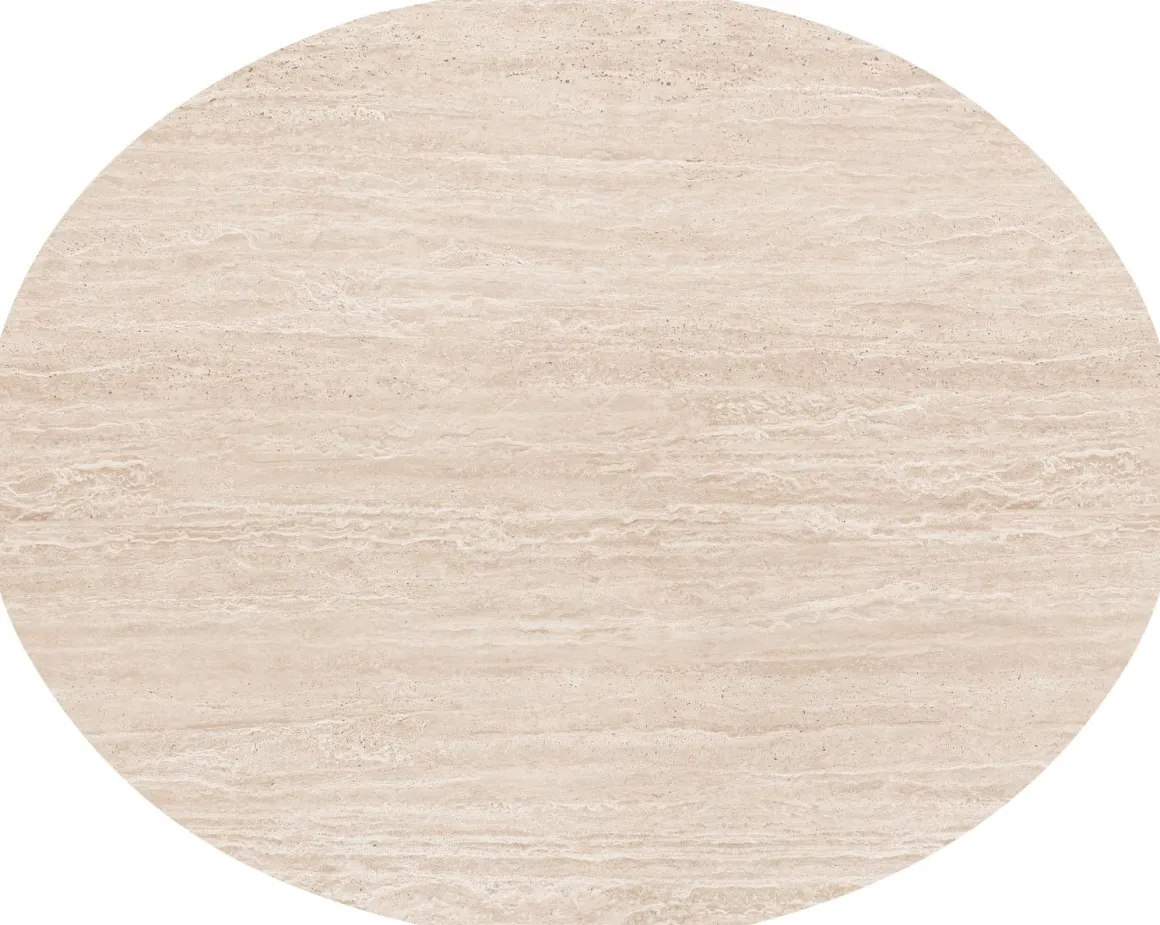 Eetkamertafel ARAS is met zijn ovalen blad en centrale conische poot een eyecatcher voor je interieur. Het blad heeft een afmeting van 150 x 120 cm en is gemaakt van Primo Laminato (HPL) in travertinlook. Het onderstel van ARAS is uitgevoerd in gelakt eikenfineer. De consche poot is aan de binnenzijde verzwaard om maximale stabilteit van de tafel te garanderen. Wil je de rechte lijnen in je interieur doorbreken en je interieur meer zachtheid geven? Dan is ARAS jóuw eetkamertafel!