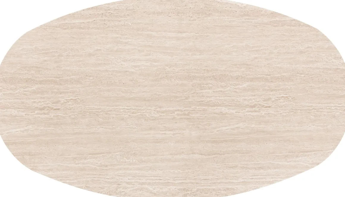 Ben je op zoek naar een eetkamertafel met vriendelijke, ronde vormen? Laat je verrassen door deze ovalen eetkamertafel ARAS met blad van Primo Laminato (HPL) in travertinlook. ARAS heeft een afmeting van 210 x 120 cm en staat op twee halve conische poten afgewerkt in gelakt eikenfineer. De poten zijn aan de binnenzijde verzwaard om maximale stabilteit van de tafel te garanderen. Zie jij jezelf al zitten?