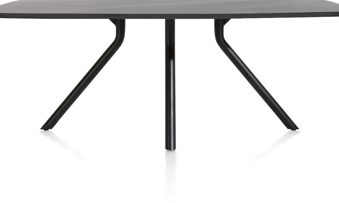 Geef jouw eethoek een upgrade met deze ovale tafel ARVADA in de kleur onyx. Het massief eikenhouten blad is ook verkrijgbaar in een naturelkleur en in plaats van de centrale poot kun je ook kiezen voor ronde zwart metalen poten aan de kopse zijden van de tafel. ARVADA laat zich mooi combineren met andere XOOON programma’s, dus mix & match erop los!