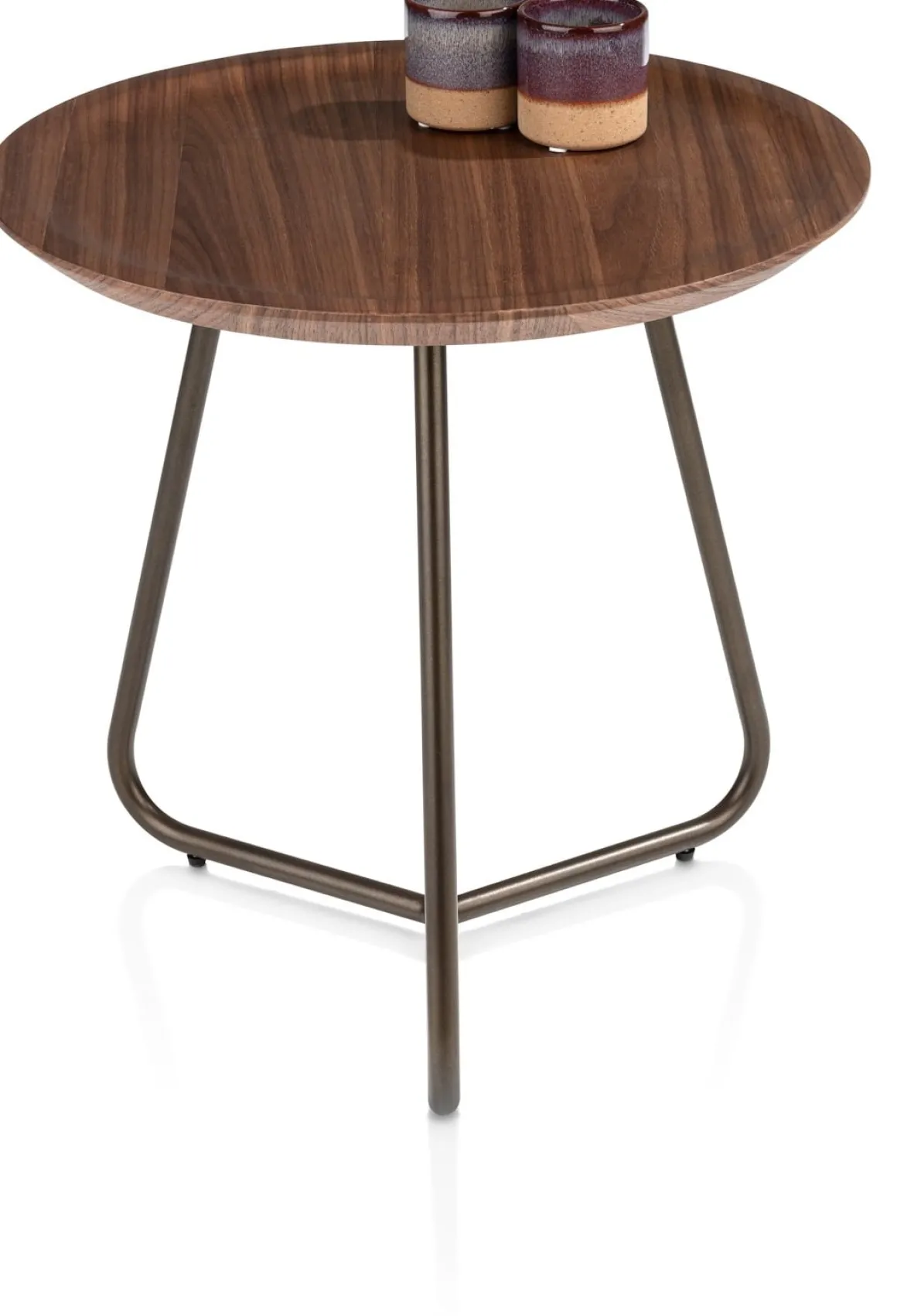 Maak jouw zithoek compleet met de BRIANZA bijzettafel. Het blad is uitgevoerd in gelakt notenfineer en benadrukt de warme, stijlvolle uitstraling van deze collectie. De subtiele verjongde rand geeft de tafel een lichte look, terwijl het ranke metalen draadframe voor een moderne en luchtige basis zorgt. Dankzij zijn compacte formaat is de bijzettafel ideaal naast de bank of fauteuil, maar ook handig als extra tafeltje in je interieur. Combineer hem met de eetkamertafel en salontafel uit dezelfde serie voor een harmonieus geheel. Met de BRIANZA spiegel en de kasten uit deze collectie trek je de elegante look moeiteloos door in de hele ruimte.