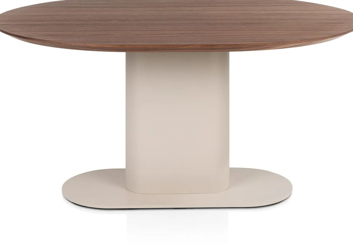 Creëer een intieme eetplek met eetkamertafel BRIANZA van 150 x 120 cm. Het ovalen blad in warm walnootfineer heeft een verjongde rand die het design luchtig maakt. De ronde vormen vloeien samen met de ellipsvormige kolompoot in crèmekleur, die door de verzwaarde kern optimale stabiliteit biedt. Deze combinatie van stijlvol en functioneel maakt BRIANZA perfect voor elke woonruimte. Verkrijgbaar in meerdere formaten én ook met een steelbrown poot voor een krachtiger accent. Ontdek de andere tafels en kasten uit de BRIANZA collectie en ervaar hoe eigentijdse elegantie jouw interieur naar een hoger niveau tilt.