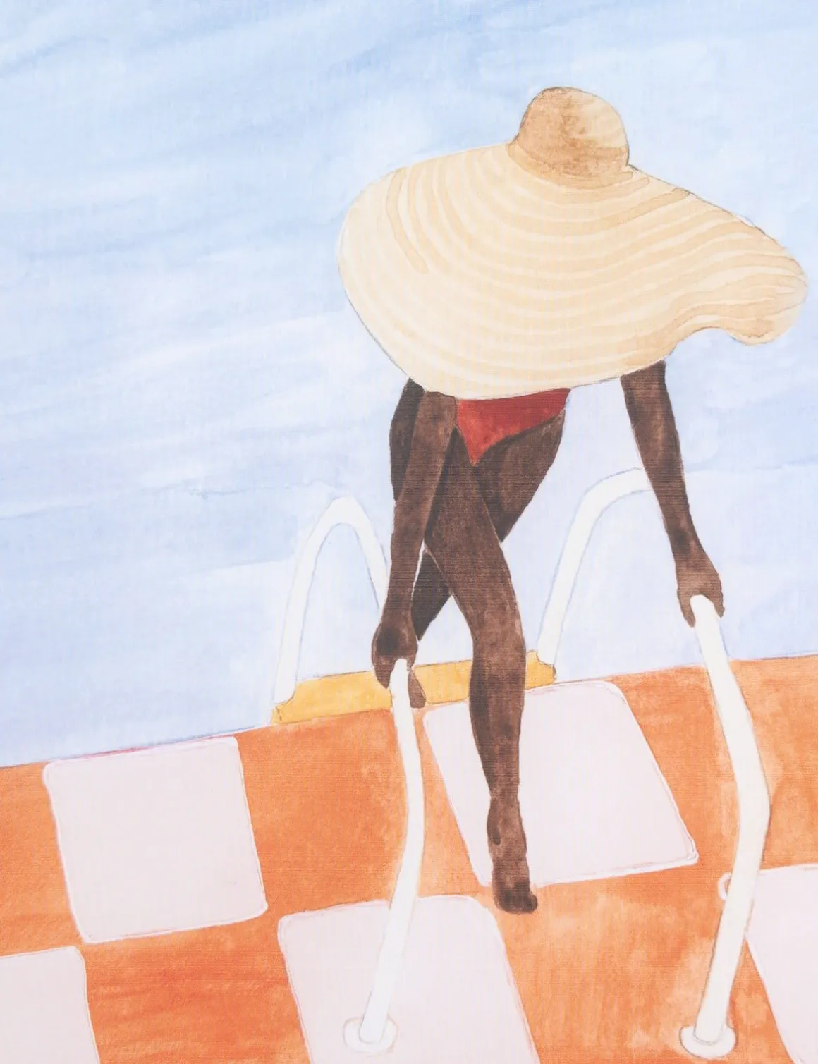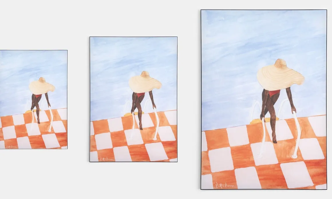 Laat je interieur stralen met Aurora, een stijlvol aquarelontwerp van Pret a Presse. Het schilderij toont een vrouw in een rode badpak en grote hoed, die via een ladder een zwembad in stapt – een moment van rust, zon en elegantie. De warme kleuren, het oranje-witte tegelpatroon en de heldere lucht brengen een zomerse sfeer die je ruimte direct opfrist.Aurora is gedrukt op een hoogwaardig polyester doek, speciaal ontworpen voor een verwisselbaar metalen frame. Dit slimme systeem maakt het mogelijk om meerdere kunstwerken uit de collectie eenvoudig af te wisselen. Zo kun je je wanddecoratie aanpassen aan het seizoen, je stemming of een nieuw interieurconcept – zonder gedoe. De aquareltechniek geeft Aurora een zachte, verfijnde uitstraling met transparante kleurlagen en subtiele details. Dit maakt het werk niet alleen visueel aantrekkelijk, maar ook tijdloos.Verkrijgbaar in drie formaten – 70×100 cm, 90×140 cm en 125×185 cm – is Aurora een perfecte keuze voor wie houdt van kunst met karakter én flexibiliteit.