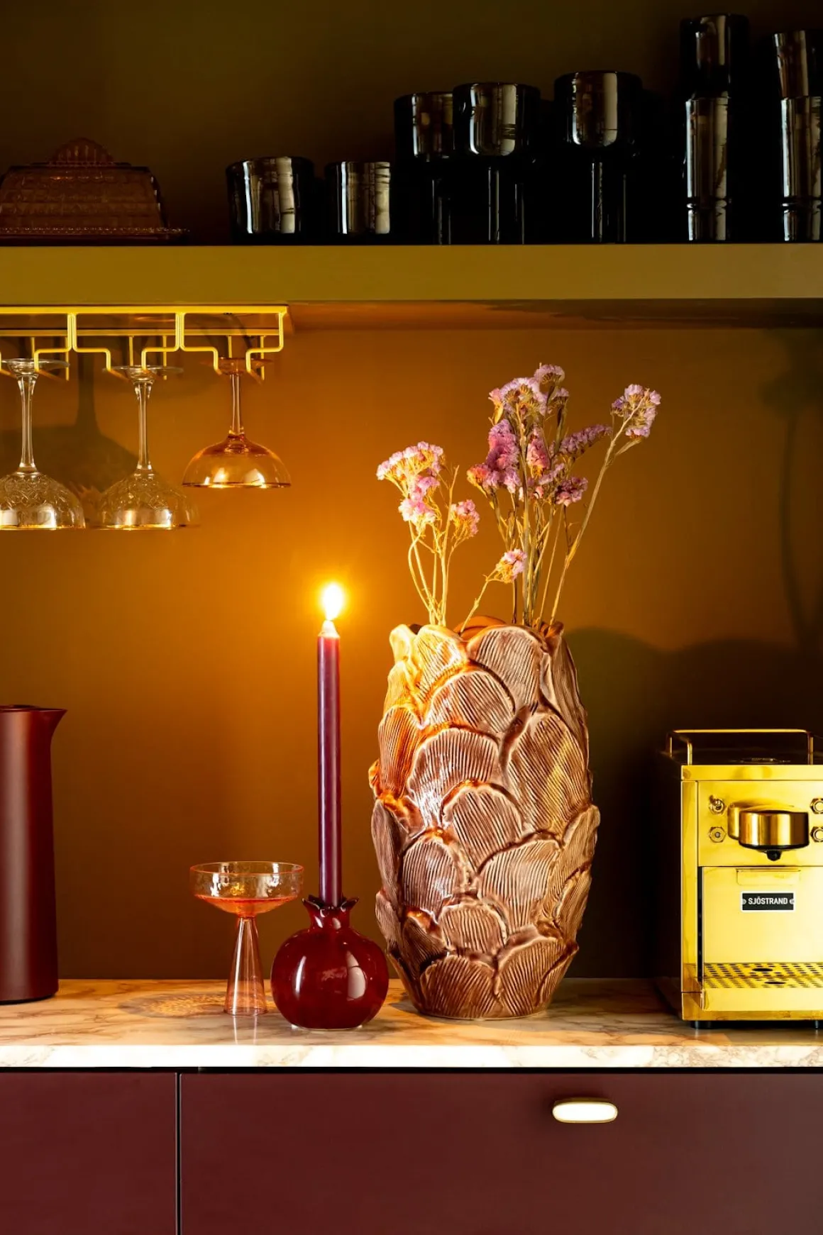 De Pomegranate kandelaar van COCOmaion is een prachtige blikvanger met een speels design. Deze keramieken kandelaar is 12 cm hoog en heeft de vorm van een granaatappel. De afwerking is van een rijke bordeauxrode glazuur, die luxe uitstraalt. Deze speelse kandelaar geeft een warme touch aan elke ruimte en is perfect om je kaarsen op een leuke manier te presenteren.