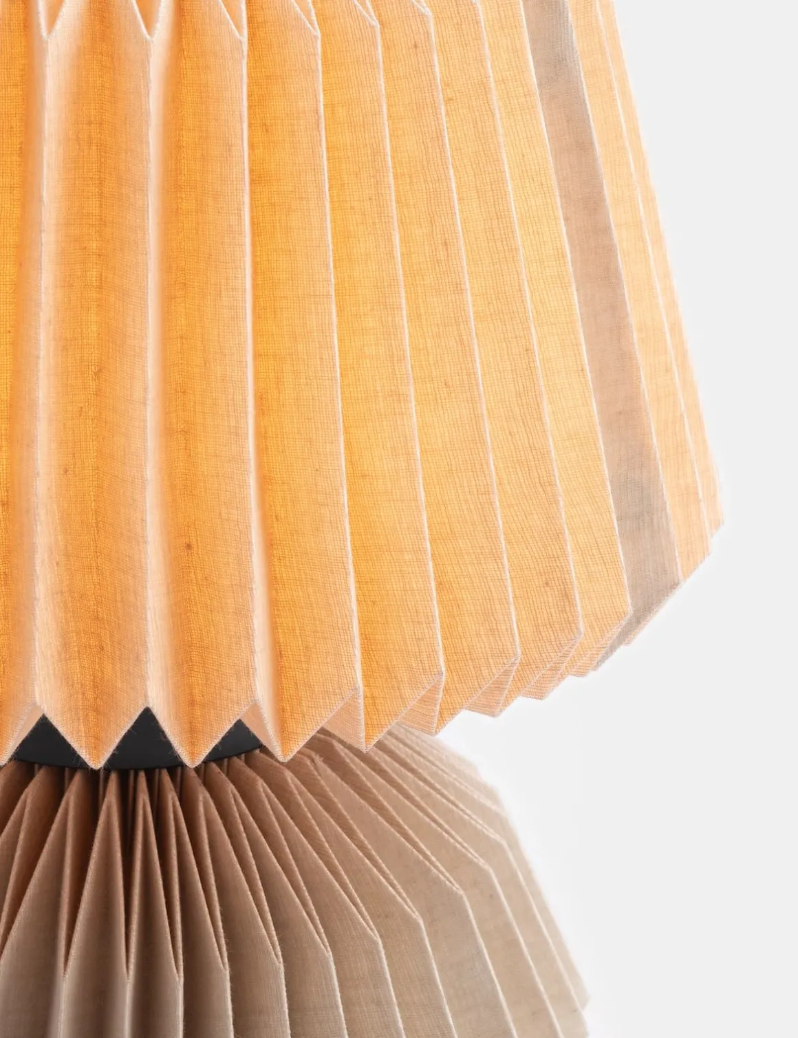 COCOmaison is dol op verrassende ontwerpen en dat zie je zeker terug in de Rikke tafellamp. De kap en voet van deze bijzondere lamp zijn gemaakt van stevig papier dat als smockwerk gevouwen is. Daarmee krijgt de lamp een origami-achtige uitstraling die helemaal past in de Japandi woonstijl. De hoogte is 33cm en de doorsnede 29cm, maar het is vooral het materiaal dat opvalt. Het papier heeft een naturel kleur en is semi-transparant, zodat de lamp een prachtig gedempt warm licht verspreidt als hij aan is. Maar ook als hij overdag uit is, is het een opvallend design object in huis.