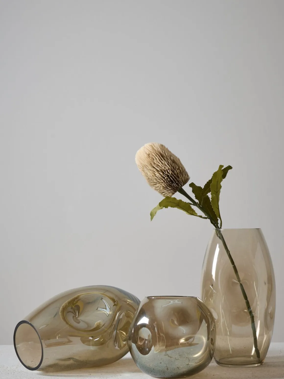 Geef je interieur een update met een mooie toffe vaas! Bijvoorbeeld met deze grijze glazen vaas DON met ‘deuken’ in de zijkant. Voor een extra luxe touch heeft de vaas een glanseffect op de buitenkant. Vaas DON is 28 cm hoog en heeft een kunstzinnige uitstraling dankzij de ‘deuken’ in het glas. Ook verkrijgbaar in twee kleinere formaten met een iets andere vormgeving. Ontdek de uitgebreide collectie glazen vazen van COCOmaison.