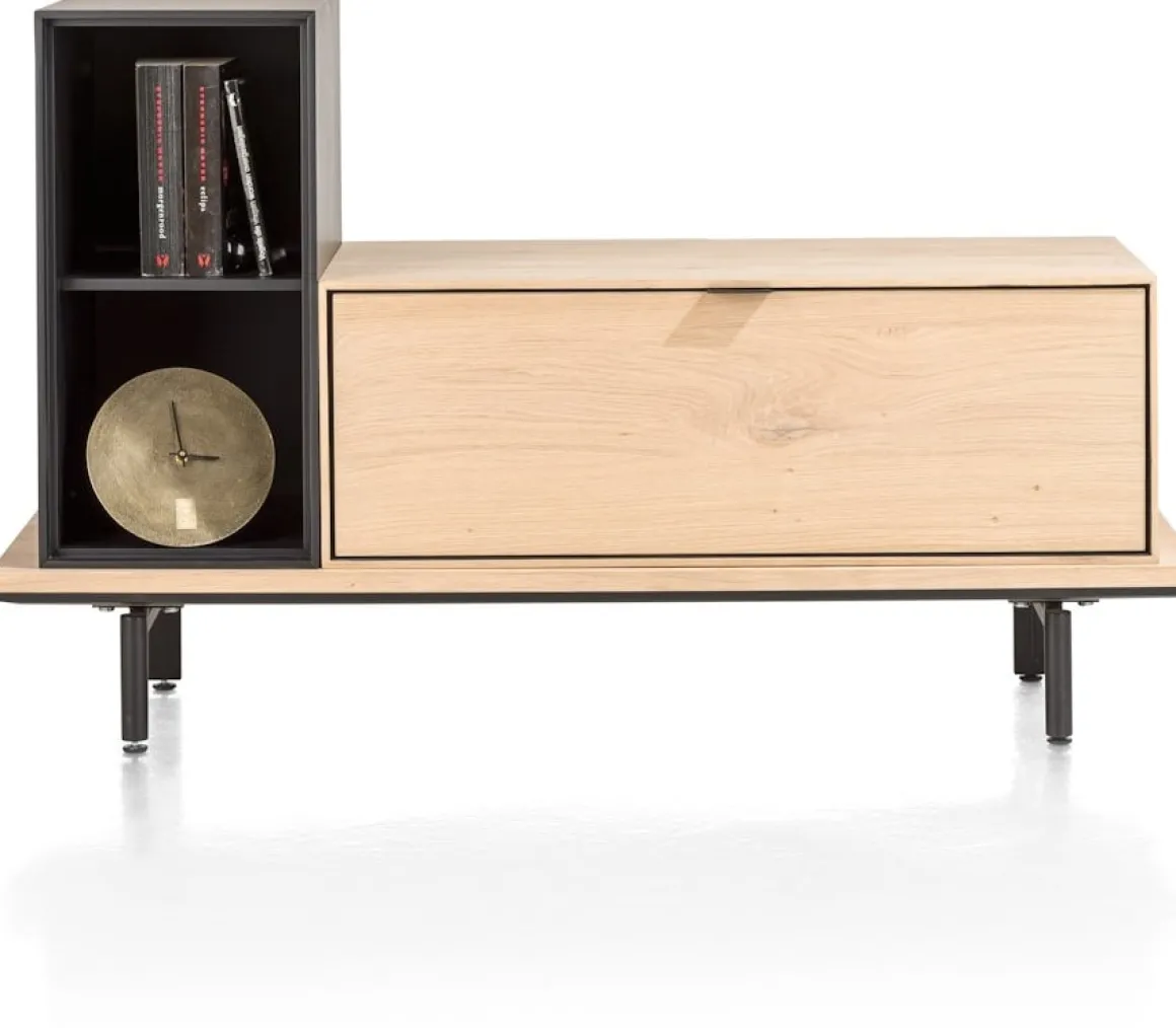 Met onze nieuwe serie ELEMENTS haal je de interieurstylist in je naar boven! Je stelt namelijk met alle losse ELEMENTS items jouw (wand)kast helemaal naar eigen wens samen. Gebruik dit naturel eiken fineer platform van 100 cm breed inclusief 2 metalen poten als basis om andere ELEMENTS items op pootjes te zetten! Ga je voor een XS opstelling of pak je groots uit en wordt het een XXL kast?