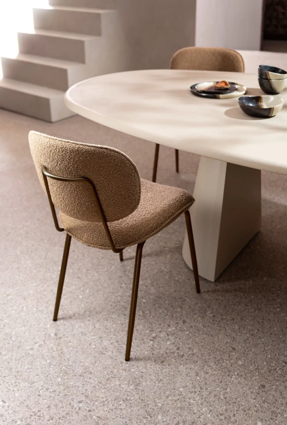 LEXI in okergeel is een echte eyecatcher. De levendige kleur geeft direct sfeer aan je eethoek, terwijl de zachte boucléstof Cloudy zorgt voor comfort. Het metalen frame en de handige handgreep in steelbrown maken de look helemaal af. Fan van de vorm maar op zoek naar een andere kleur? LEXI is er ook in de kleuren koper, beige en olijfgroen.