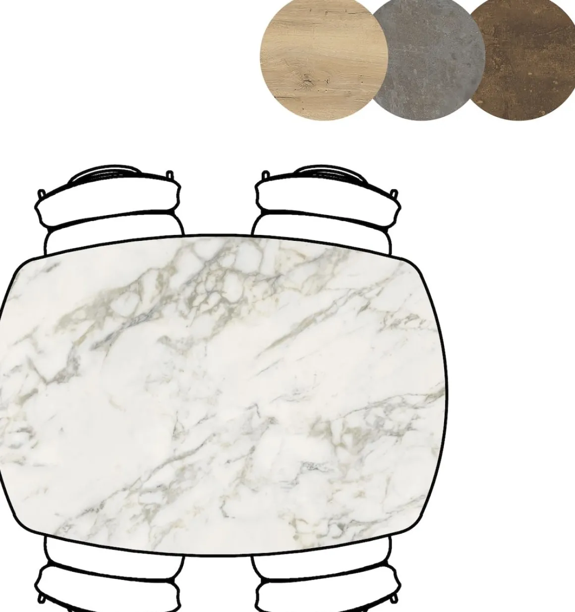 blad in Primo Laminato (HPL) – marmerlook wit – onderstel in metaal, zwart