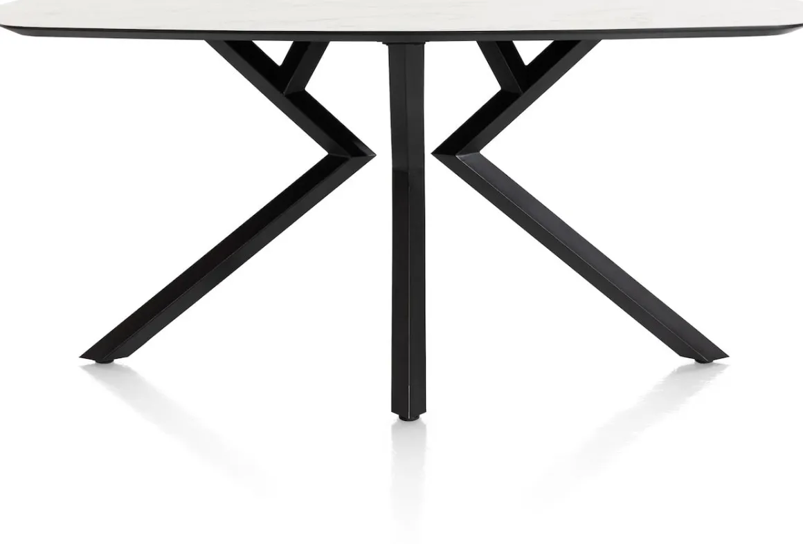 blad in Primo Laminato (HPL) – marmerlook wit – onderstel in metaal, zwart