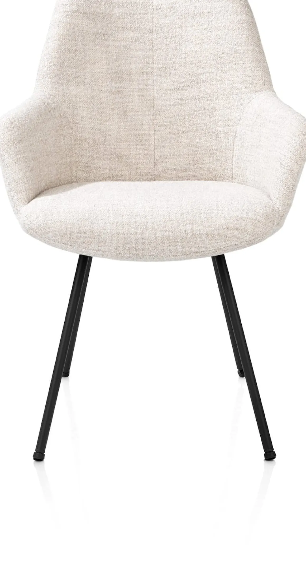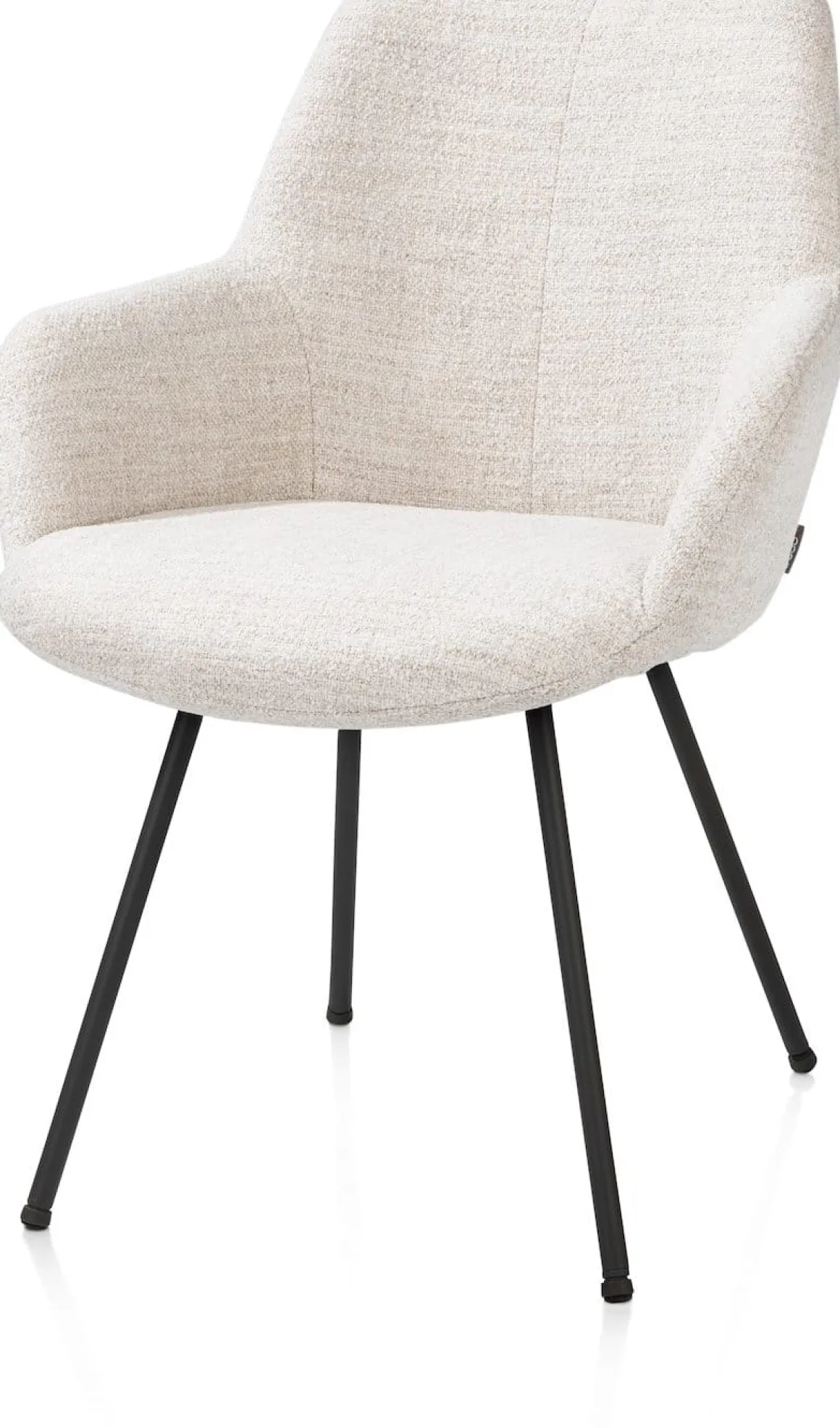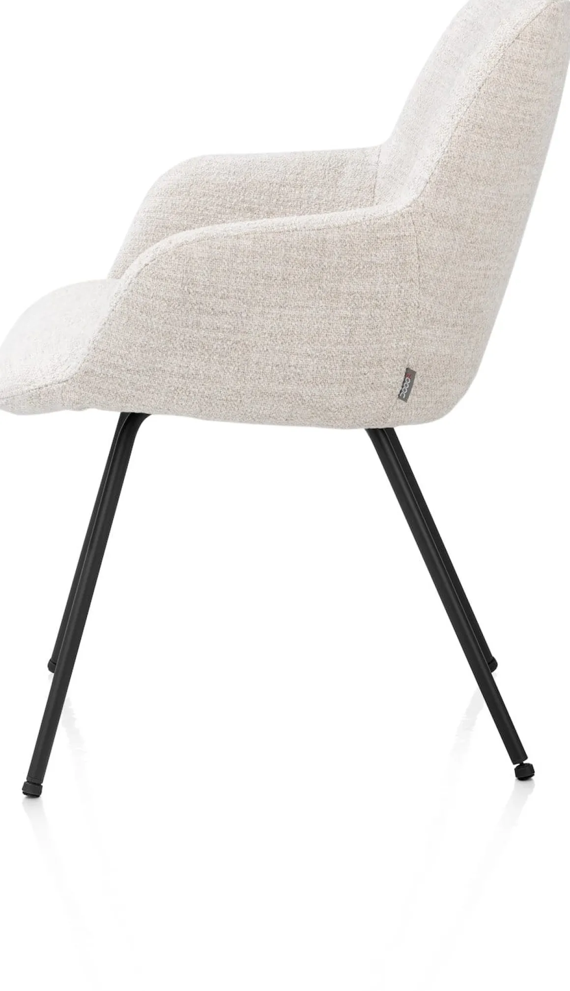 Ben je op zoek naar een moderne armstoel, dan is armstoel MATS de ideale stoel voor jou. Met haar crèmekleurige bekleding en rough off black poten past deze stoel in elk interieur. MATS heeft mooie ronde vormen. De metalen poten en zachte bekleding in stof Luton, geven de stoel een trendy look. Dankzij de comfortabele armleuningen en heerlijke zit, leent MATS zich om uren te tafelen. Hij is makkelijk onder de tafel te schuiven en verkrijgbaar in verschillende uitvoeringen qua kleur, bekleding en onderstel.