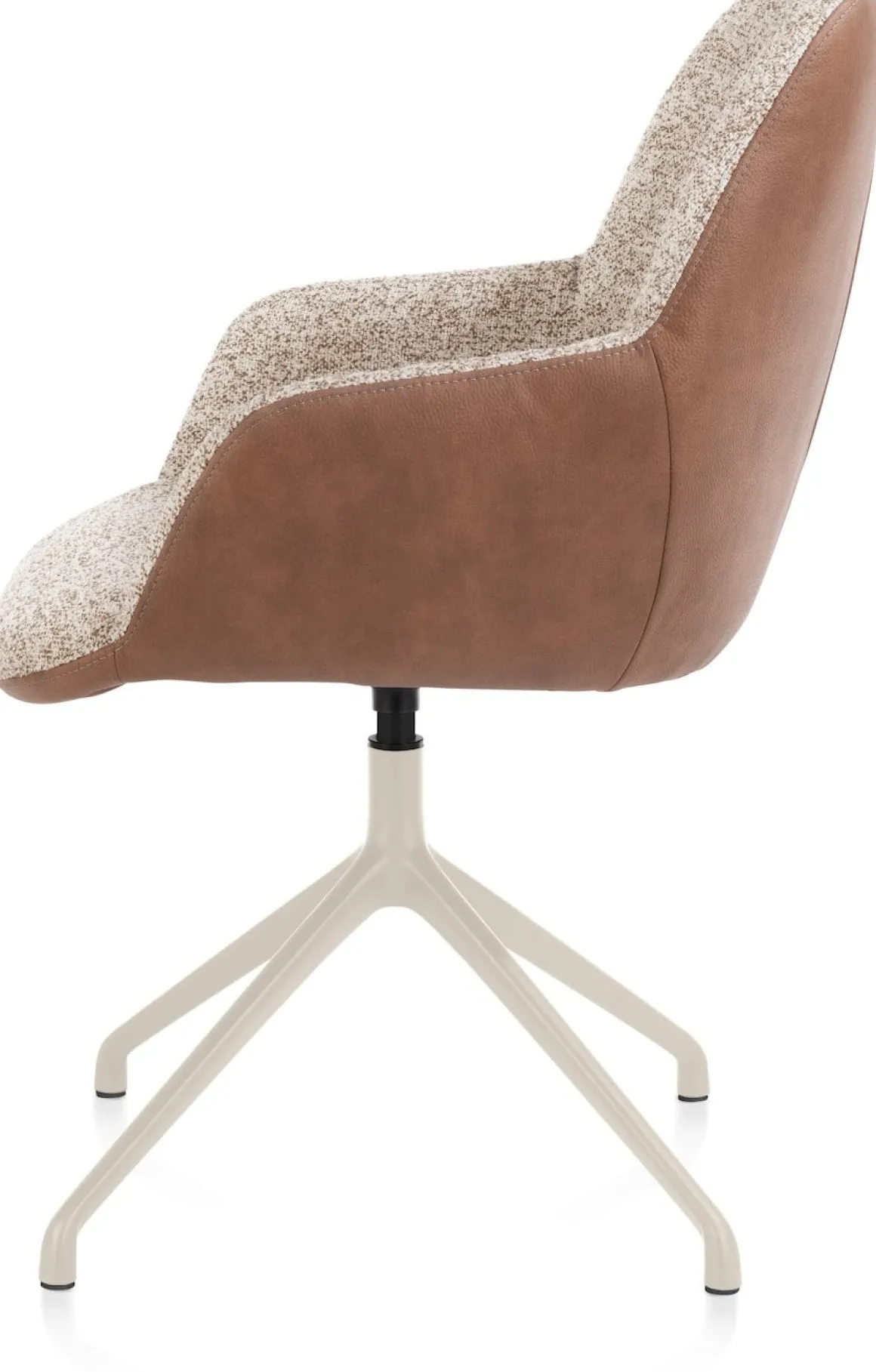 Mats, armstoel aluminium frame 4-poots – draaibaar creme – Pala cognac + Luton koper