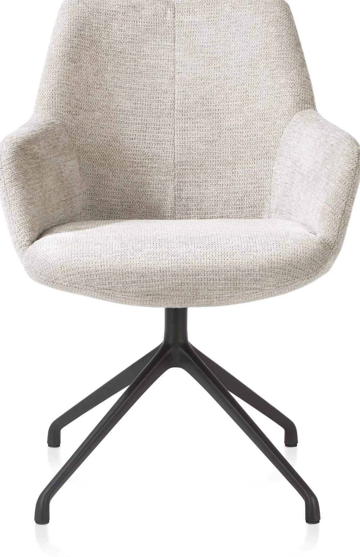 MATS is een stijlvolle armstoel waarmee je alle kanten op kunt. De grafietkleurige centrale kruispoot is gemakt van gegoten aluminium. De stoel is 360° draaibaar. Maak zelf je keuze qua bekleding uit onze selected choices collectie. Naar wens is MATS ook verkrijgbaar met wielen, alleen is hij dan niet draaibaar. Armstoel MATS is ook met metalen 4-poot verkrijgbaar.