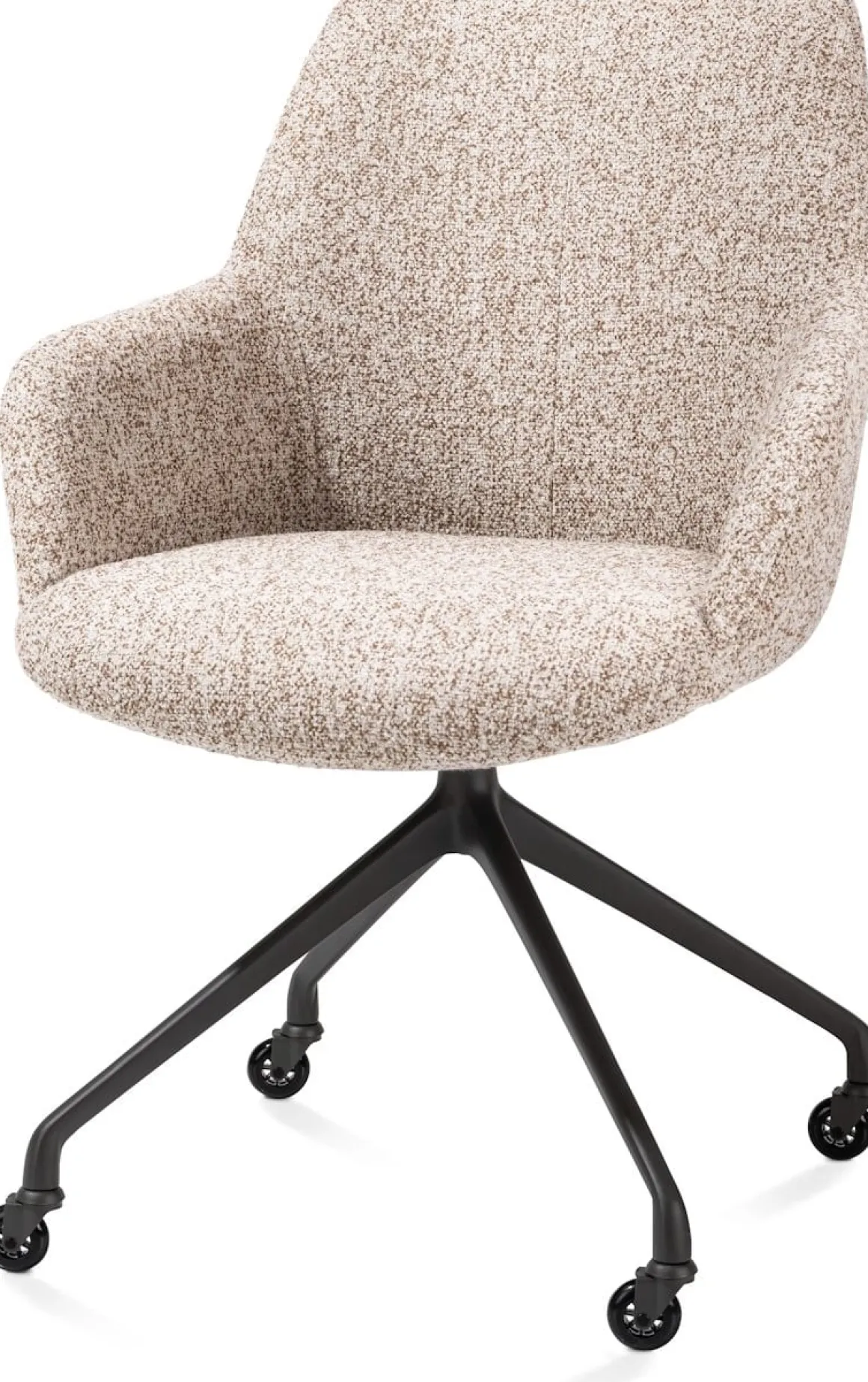 Mats, armstoel aluminium frame wielen rough off black – stof Luton – koper