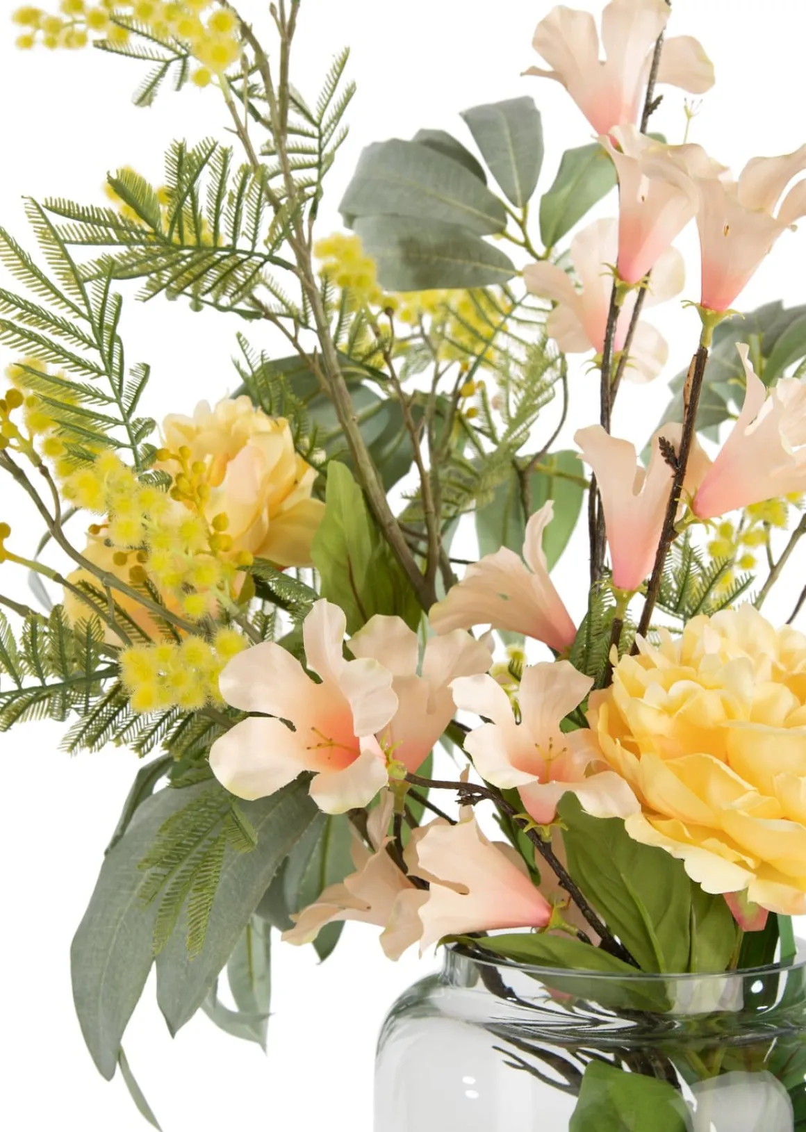 MIMOSA SPRAY behoort tot de vlinderbloemen en herken je aan de vrolijk gekleurde gele bolletjes. Een leuke tak van 110 cm die je solo in een hoge vaas kunt zetten, maar hij vult ook mooi in een plukboeket, waarin je verschillende takken uit het COCOmaison assortiment samenvoegt. Zo’n boeket kun je helemaal zelf samenstellen, in ton sur ton kleuren of juist in een zomerse kleurenmix.