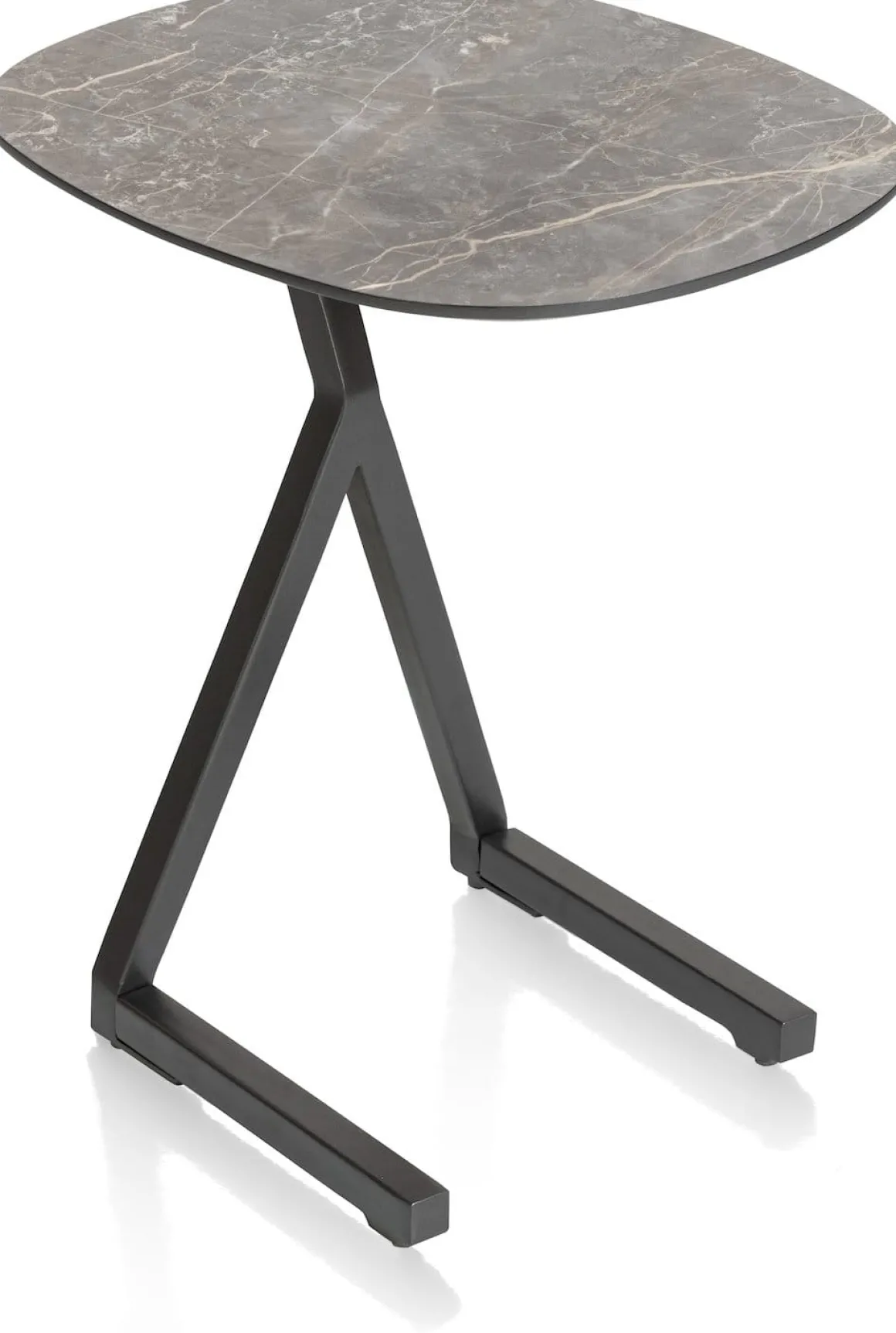 Een musthave in een digitaal huishouden: deze laptoptafel MINATO pak je er gemakkelijk even bij om een mail te typen of vanaf de bank te werken. Het tafeltje heeft een speelse vorm en een lichtgrijs blad met marmerlook. Hij staat op een metalen onderstel in de kleur grafiet. Het blad van MINATO is gemaakt van hoogwaardig MDF en heeft een afwerking in Primo Laminato (HPL).