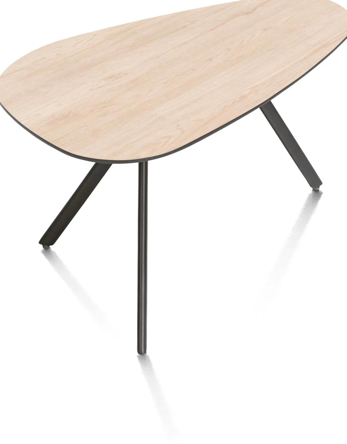 Spice je woonkamer op met deze salontafel uit de MINATO tafelserie. De salontafel heeft een formaat van 75 x 45 cm en is voorzien van een hoogwaardig MDF blad met afwerking in Primo Laminato (HPL) met naturel eiken look. MINATO heeft een grafietkleur onderstel van metaal. De vorm van het blad zorgt voor een speels effect in je woonkamer. De salontafel laat zich leuk combineren met andere exemplaren uit de MINATO serie.