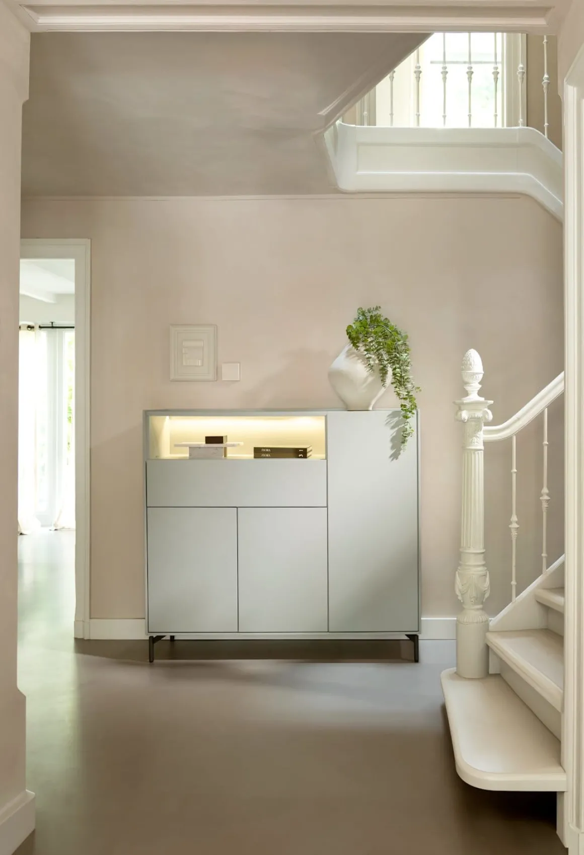 Droom jij van een mooie dressette met een strakke en moderne vormgeving? Laat je verrassen door NOON, een stijlvol dressette met een elegante en tijdloze look. Het is gemaakt van gelakt MDF in de kleur silk grey en voorzien van 3 deuren + 1 lade; greeploos en voorzien van een softclose systeem. Het niche is met led verlicht, zodat je je mooiste accessoires in de spotlight kunt zetten. NOON staat op metalen pootjes die verkrijgbaar zijn in 2 kleuren: grafiet (standaard) of silk grey (meerprijs). Kijk ook eens naar het lowboard, het dressoir en de bergkast uit de NOON-serie.