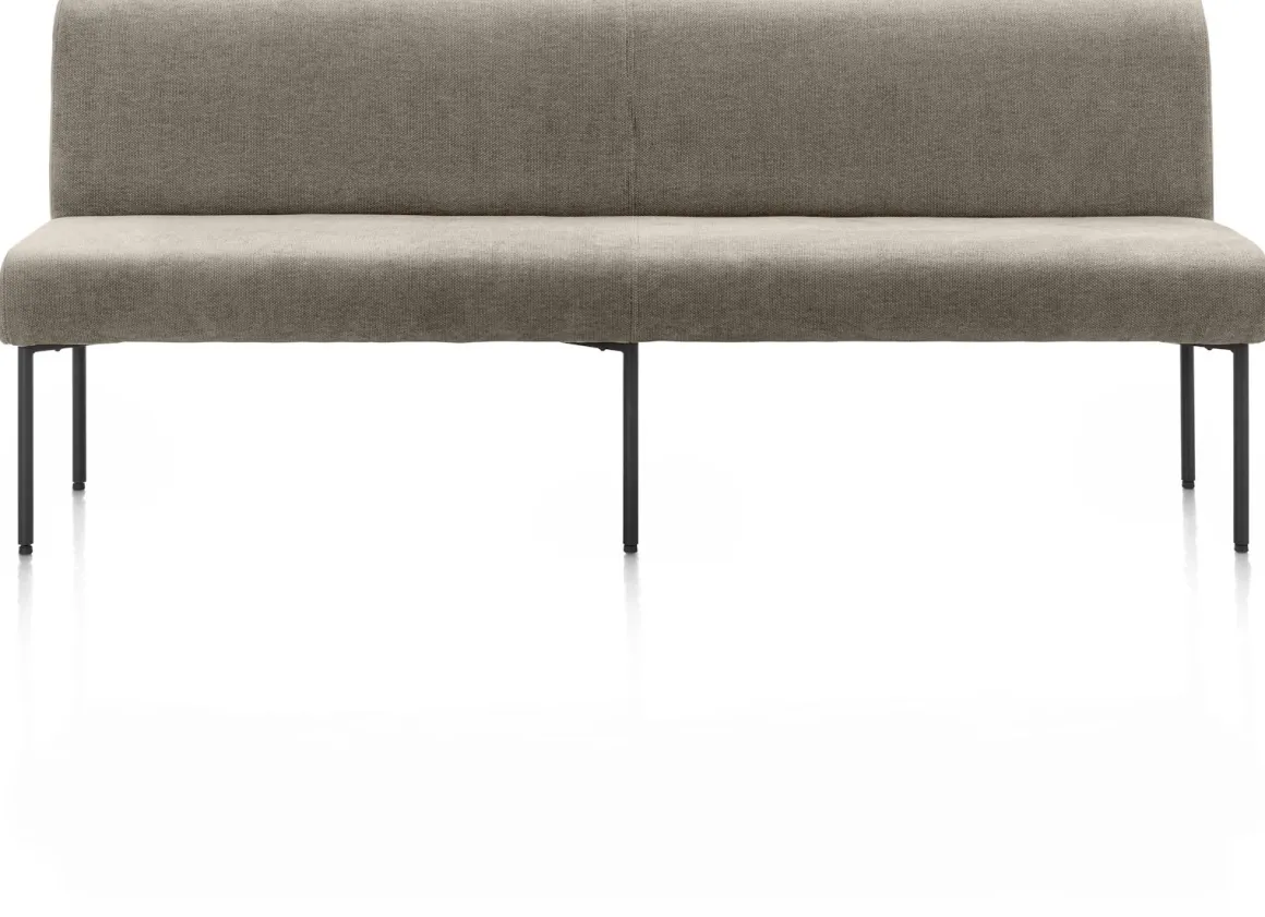 Ben je op zoek naar een eetkamerbank voor extra veel plek aan je eetkamertafel? Kijk dan eens naar eetkamerbank REVERSO! Deze moderne eetkamerbank stel je qua opstelling volledig naar eigen wens samen. REVERSO is uitgevoerd in de prachtige chenillestof Livigno in de kleur bruin. Naar wens shop je hem ook in kiezelkleur. Alle elementen waarin REVERSO verkrijgbaar is, zijn koppelbaar en daardoor oneindig met elkaar te combineren. Dit element van 200 cm is ook zonder rugleuning verkrijgbaar. Omdat de elementen rondom gestoffeerd zijn, is eetkamerbank REVERSO ook prachtig vrij in de ruimte te plaatsen. De eetkamerbank heeft een rank metalen onderstel in grafietkleur.