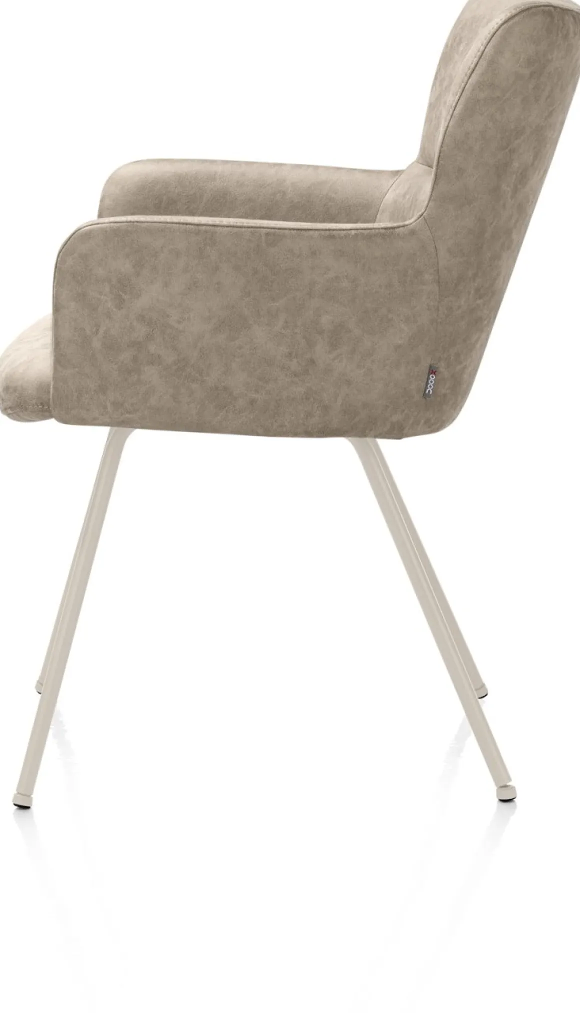 De SAGE armstoel in beige straalt warmte en rust uit. De stoel is bekleed met stof Oregon, een zachte microvezelstof met een stoere look. Dankzij de afgeronde rugleuning, geïntegreerde armleuningen en ruime zitting zit je altijd comfortabel; ideaal voor lange diners of gezellige momenten aan tafel. Het 4-poots onderstel in crèmekleur geeft de armstoel een frisse, moderne basis die mooi contrasteert met de zachte tint van de bekleding. Armstoel SAGE is verkrijgbaar in diverse uitvoeringen en kleuren, zodat je eenvoudig jouw ideale combinatie samenstelt en jouw eetruimte een persoonlijke touch geeft.