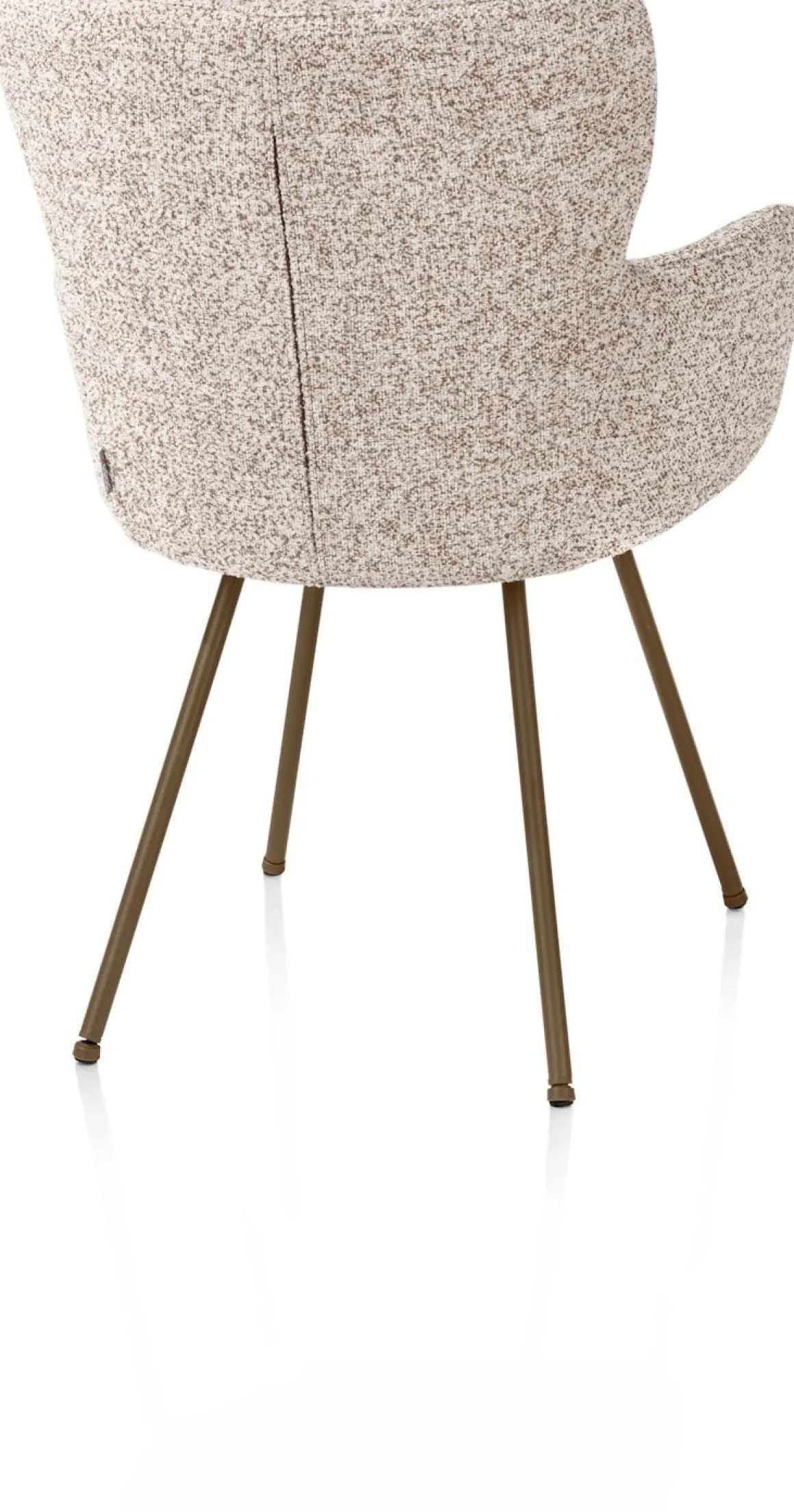 Met zijn rijke koperkleur en warme uitstraling brengt armstoel SAGE direct sfeer in huis. De bekleding in Luton-stof voelt heerlijk zacht aan en heeft een verfijnde bouclé-structuur. De vier stevige poten in steelbrown geven het geheel een rustige, aardse uitstraling die mooi aansluit bij natuurlijke interieurs. Armstoel SAGE combineert comfort met karakter. Liever een andere kleur of pootafwerking? SAGE is er in diverse varianten.