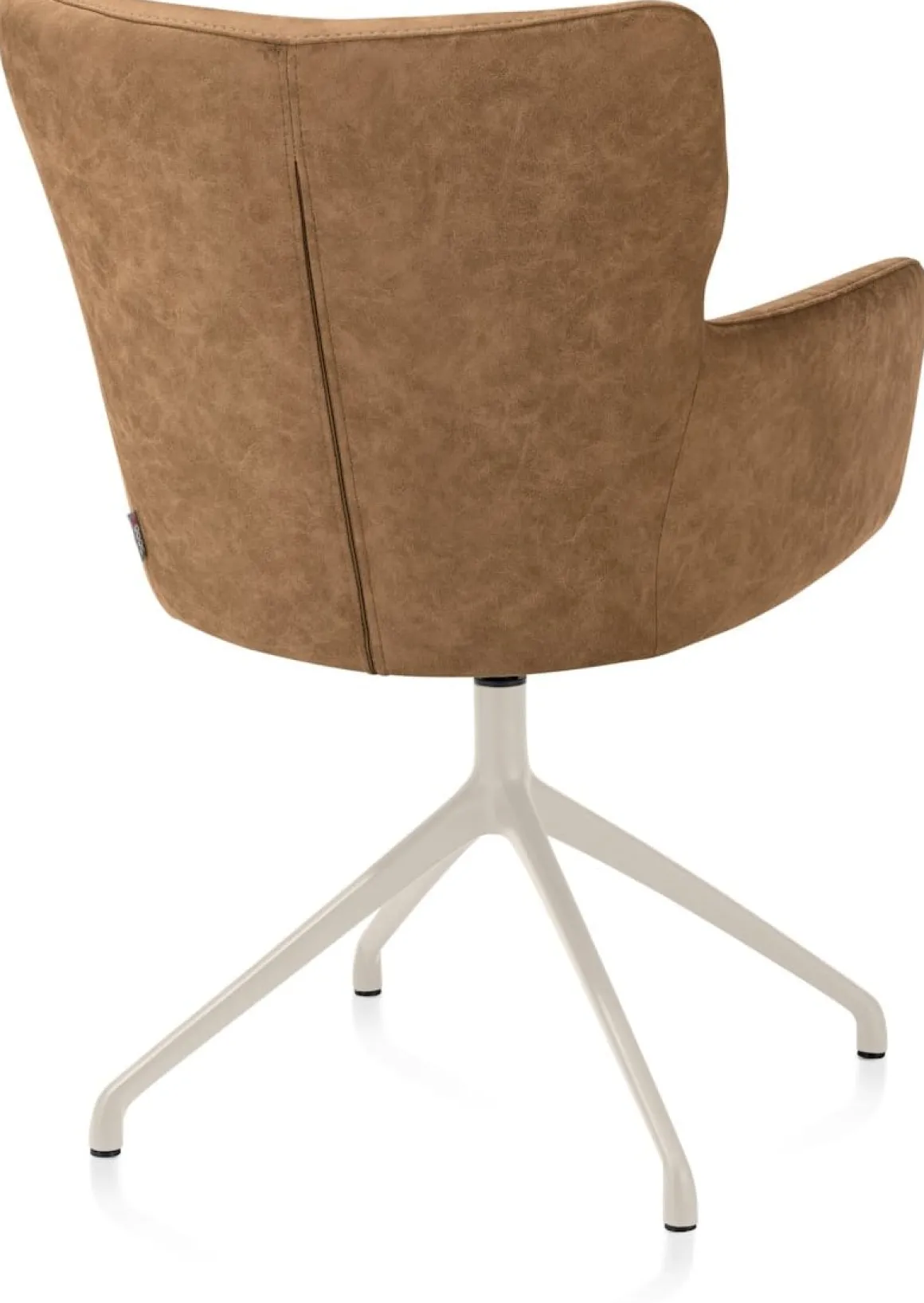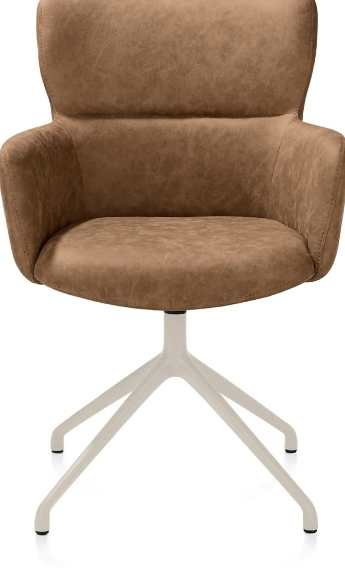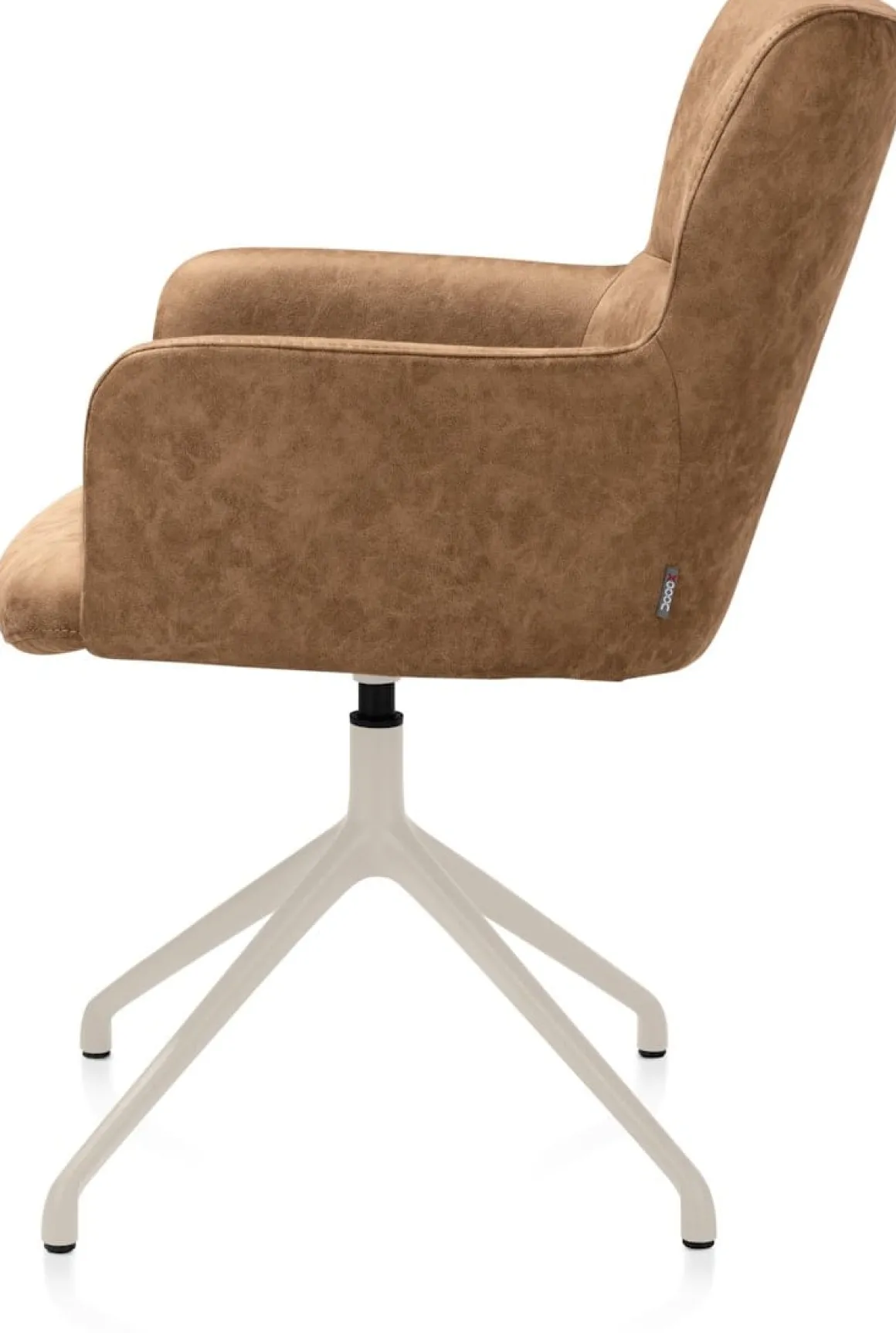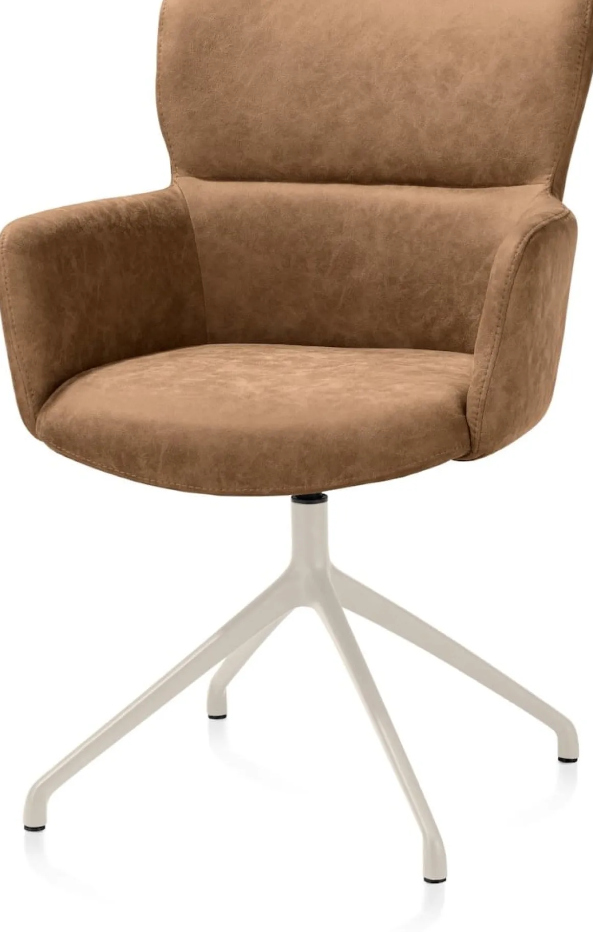 De SAGE armstoel in desertkleur brengt een warme, natuurlijke sfeer aan tafel. De stoel is uitgevoerd in stof Oregon, zachte microvezelstof met een stoere uitstraling. De afgeronde rugleuning, geïntegreerde armleuningen en royale zitting maken de stoel bijzonder comfortabel. Het draaibare onderstel in crèmekleur voegt een luchtig en eigentijds accent toe, terwijl het praktische gebruiksgemak perfect is voor dagelijks tafelen. Deze variant combineert comfort, stijl en flexibiliteit in één. Armstoel SAGE is verkrijgbaar in verschillende kleuren en uitvoeringen, zodat je altijd de perfecte match vindt voor jouw interieur.