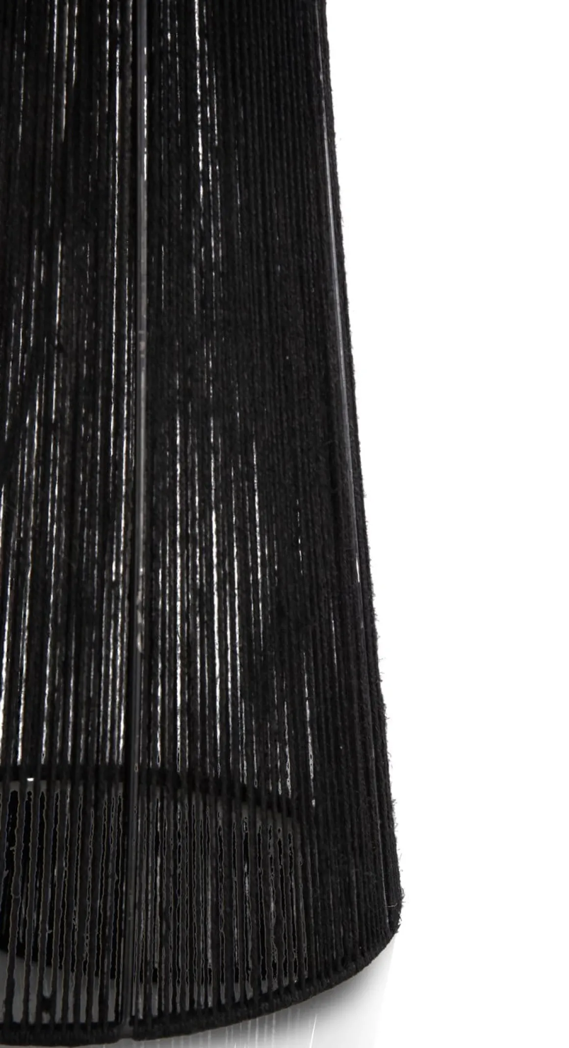 De TALI lampenserie van COCOmaison bestaat uit maar liefst 5 verschillende lampen die je onderling allemaal kunt combineren. Elke lamp heeft een strak design en is gemaakt van handgeweven jute draad. Deze vloerlamp heeft een hoogte van 120 cm en een doosnede van 46 cm. Hij is verkrijgbaar in het zwart en in naturel, net als de tafellamp met een vergelijkbaar ontwerp. Dit is de zwarte variant. In de bijpassende hanglamp worden die twee kleuren gecombineerd. Elke lamp heeft een E27 fitting voor 1 ledlamp.