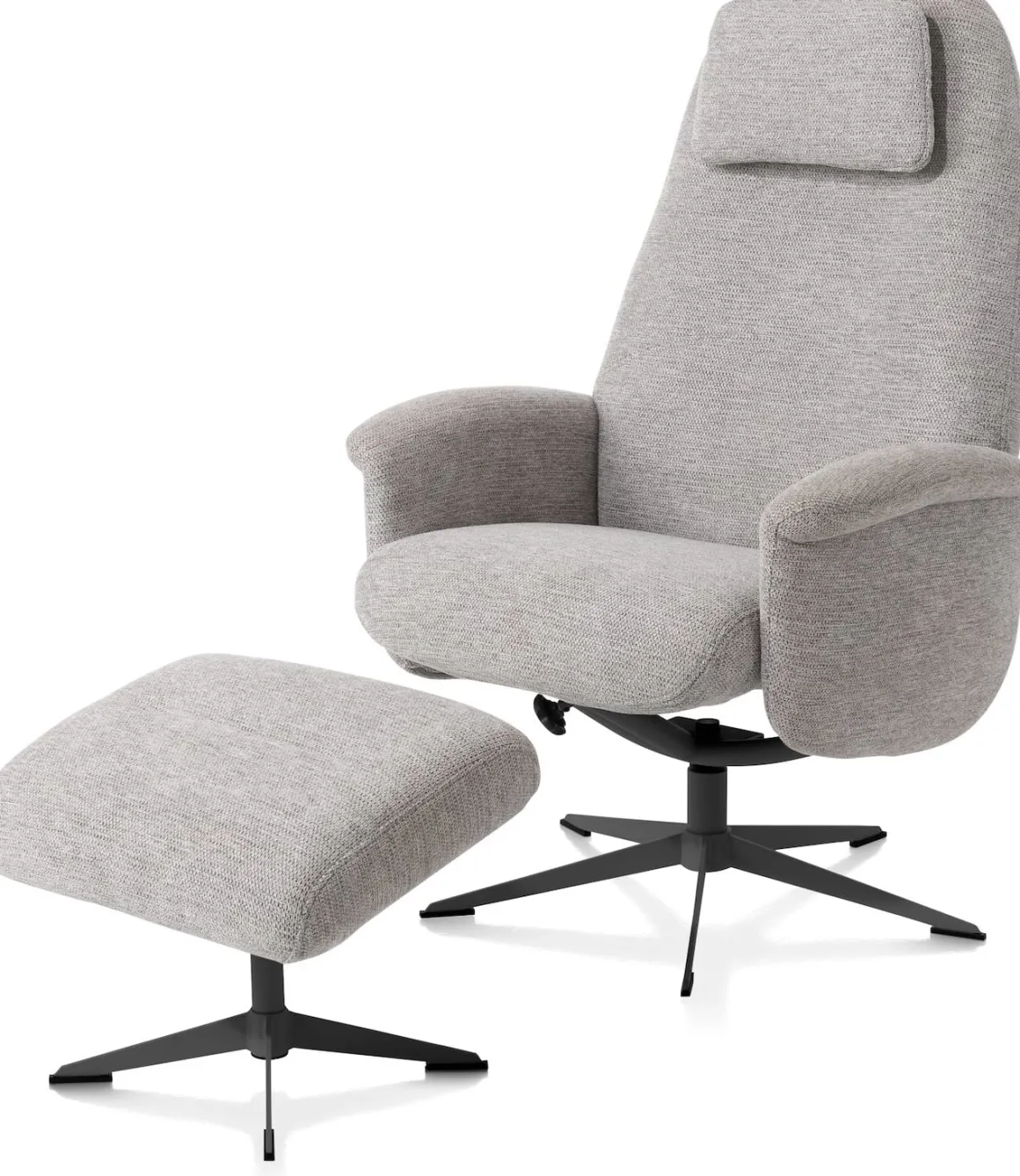 Tonale, relax-fauteuil incl. poef – graphiet frame – stof Vada kiezel of koper – Kiezel