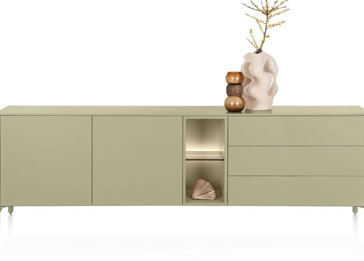 Trentino, Dressoir 240 cm. – 2-deuren + 3-laden + 2-niches – Olijf