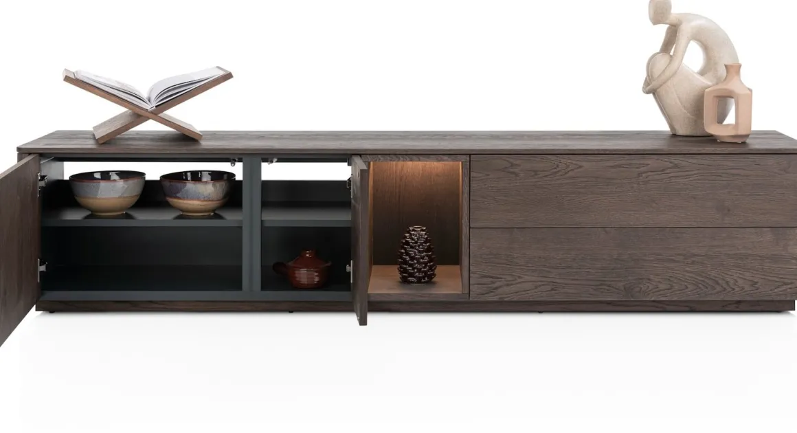 Trenton, lowboard 210 cm – 2-deuren + 2-laden + 1-niche – Clay