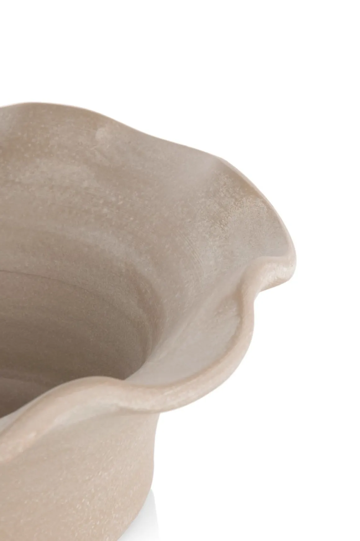 De oorsprong van de naam WAVE laat zich makkelijk raden: deze stijlvolle reeks potten en schalen kenmerkt zich door een verfijnde golfende rand. WAVE van COCOmaison wordt geproduceerd in Portugal, van 100% aardewerk. Elk object uit deze serie is met de hand gemaakt en er zijn dus geen twee stuks hetzelfde! De kleur is beige, maar ook in de kleurnuance is iedere pot uniek. De schaal is verkrijgbaar in drie maten, waarvan dit de kleinste is. Deze schaal heeft een doorsnede van 25cm bij een hoogte van 11cm.