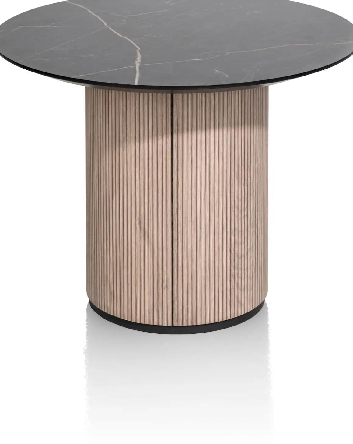 Een pronkstukje voor je woonkamer, dat is deze salontafel ARAMON van XOOON. ARAMON heeft een diameter van 60 cm, is 45 cm hoog en staat op een eigenwijze cylindrische voet. Het tafelblad is uitgevoerd in duurzaam HPL met een zwarte marmerlook. Ga je liever voor een iets grotere salontafel? Kijk dan eens naar de andere salontafel ARAMON met kegelvormige pootjes. Tip: combineer je salontafel met een prachtig kastmeubel uit de ARAMON serie!