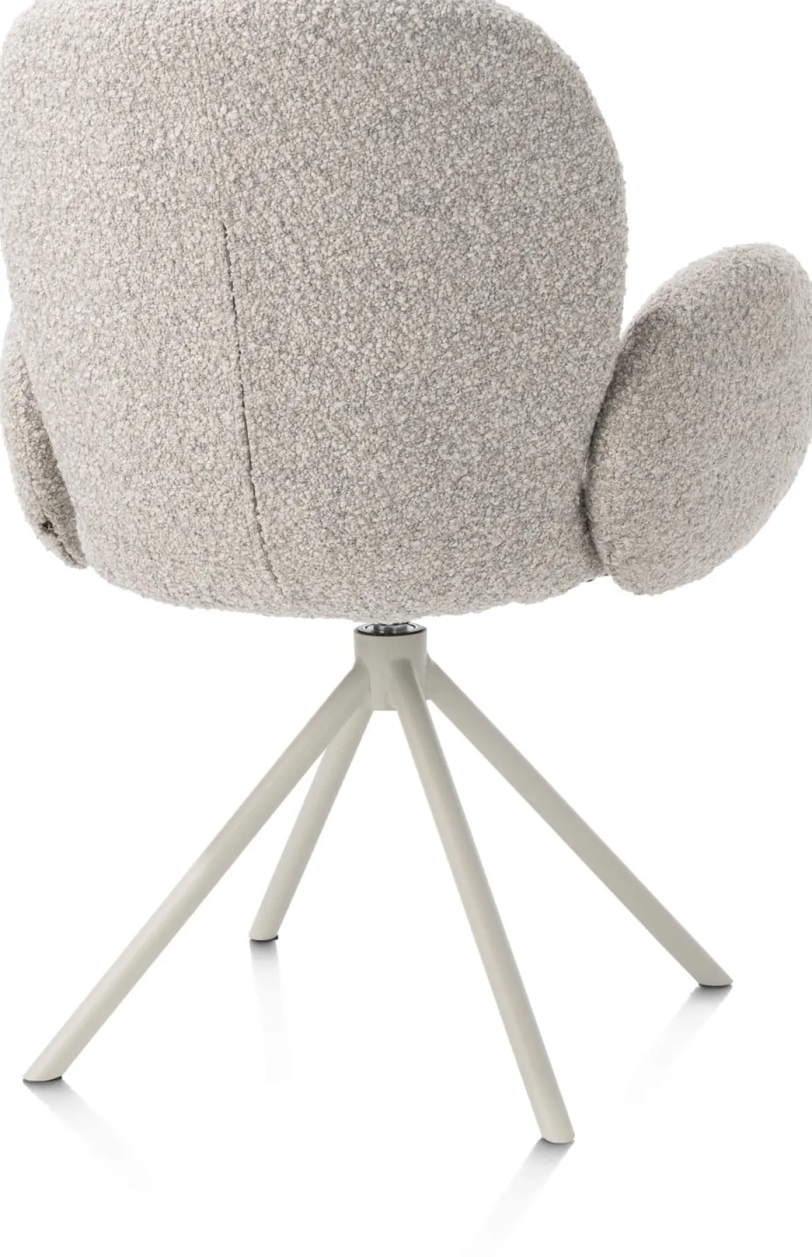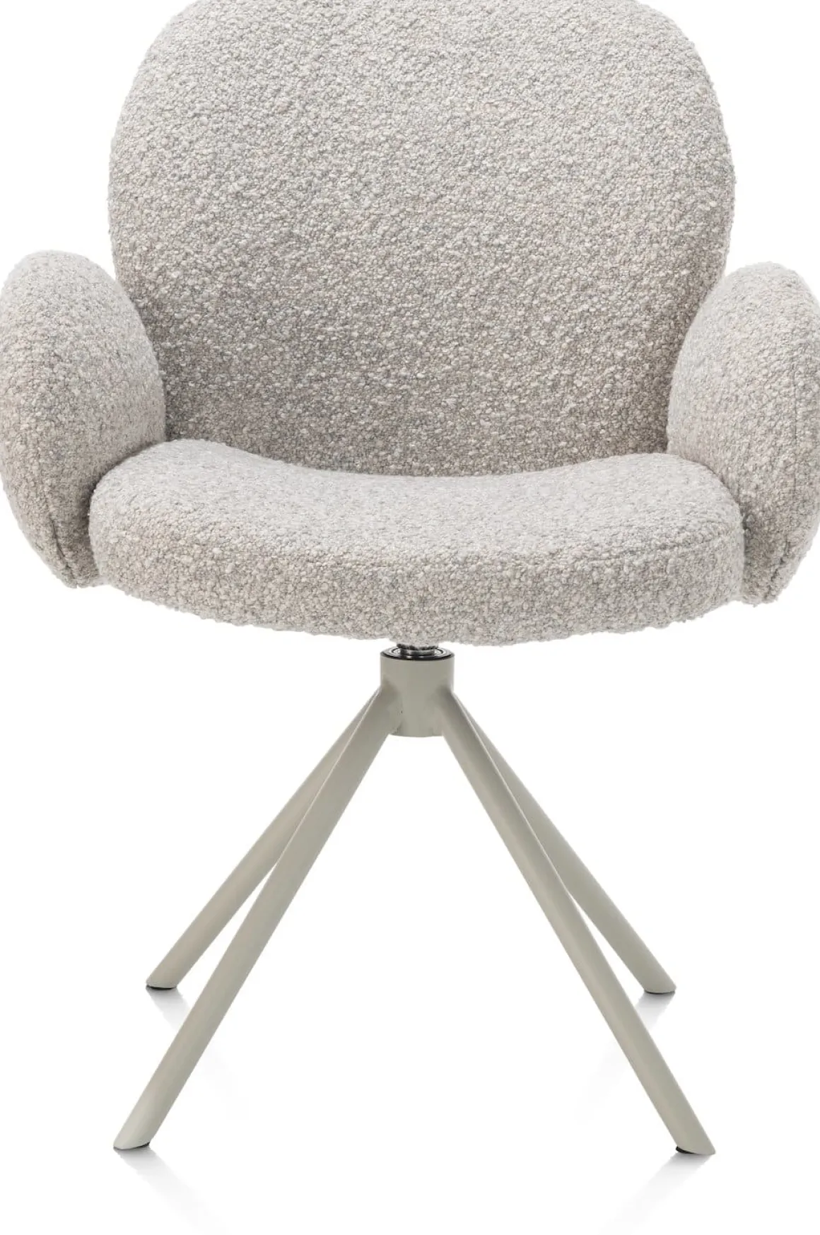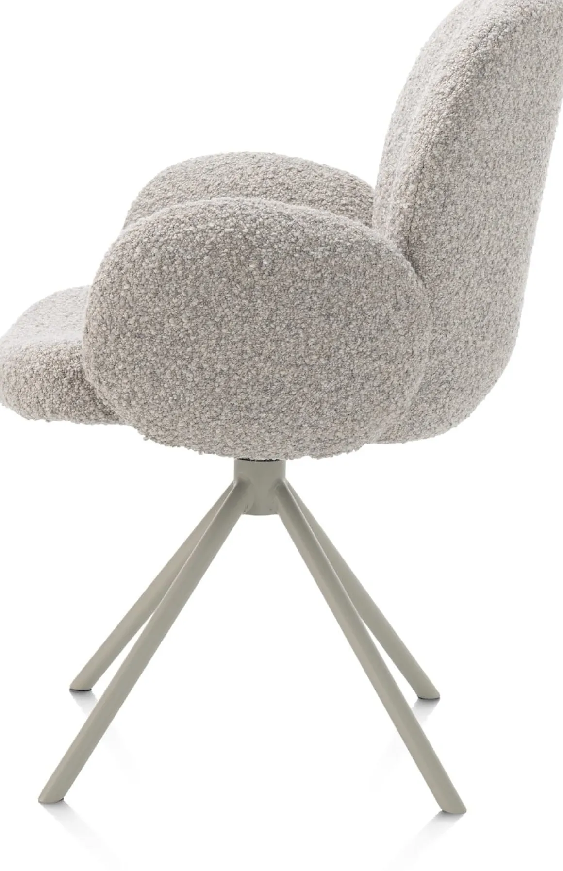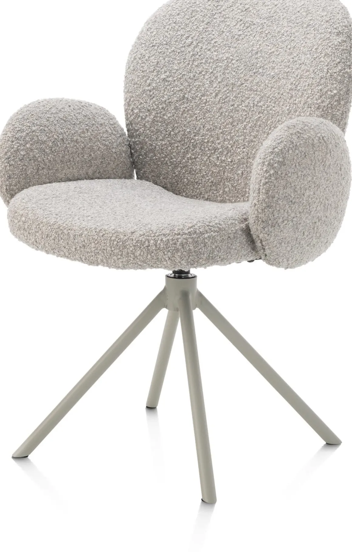 Heerlijk zacht en superstijlvol, dat is deze armstoel JAXON uit de collectie van XOOON. Een wolk van een stoel, uitgevoerd in de grove bouclé stof Brioni waaraan hij zijn aaibaarheid te danken heeft. Of je nou kiest voor deze kiezelkleur, of voor de ivoor- of leverkleurige variant; op armstoel JAXON blijf je graag wat langer zitten na het ontbijt. Een fijn extraatje is dat hij 180 graden draaibaar is en een terugdraaifunctie heeft. Hierdoor ben je binnen no time op twee plekken tegelijk. De ronde vorm en de strakke centrale 4-poot in silk grey geven armstoel JAXON een moderne touch. Zie jij hem al staan aan jouw eettafel?