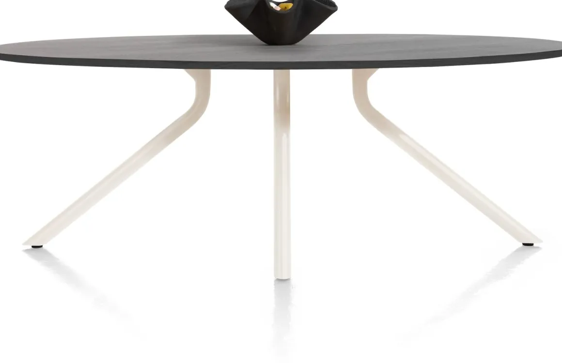 Geef je eethoek een upgrade met eetkamertafel ARVADA! Het is een eetkamertafel met een onyx kleur blad en een centrale poot in de lichte kleur nebbia. Het blad heeft een ellipsvorm met een afmeting van 220 x 110 cm. Ben je op zoek naar een eetkamertafel met een lichtere, natuurlijke look? ARVADA is er ook met een naturelkleur blad! Naar wens shop je hem ook met een ander onderstel. Zie jij deze eyecatcher al staan in jouw eetkamer?