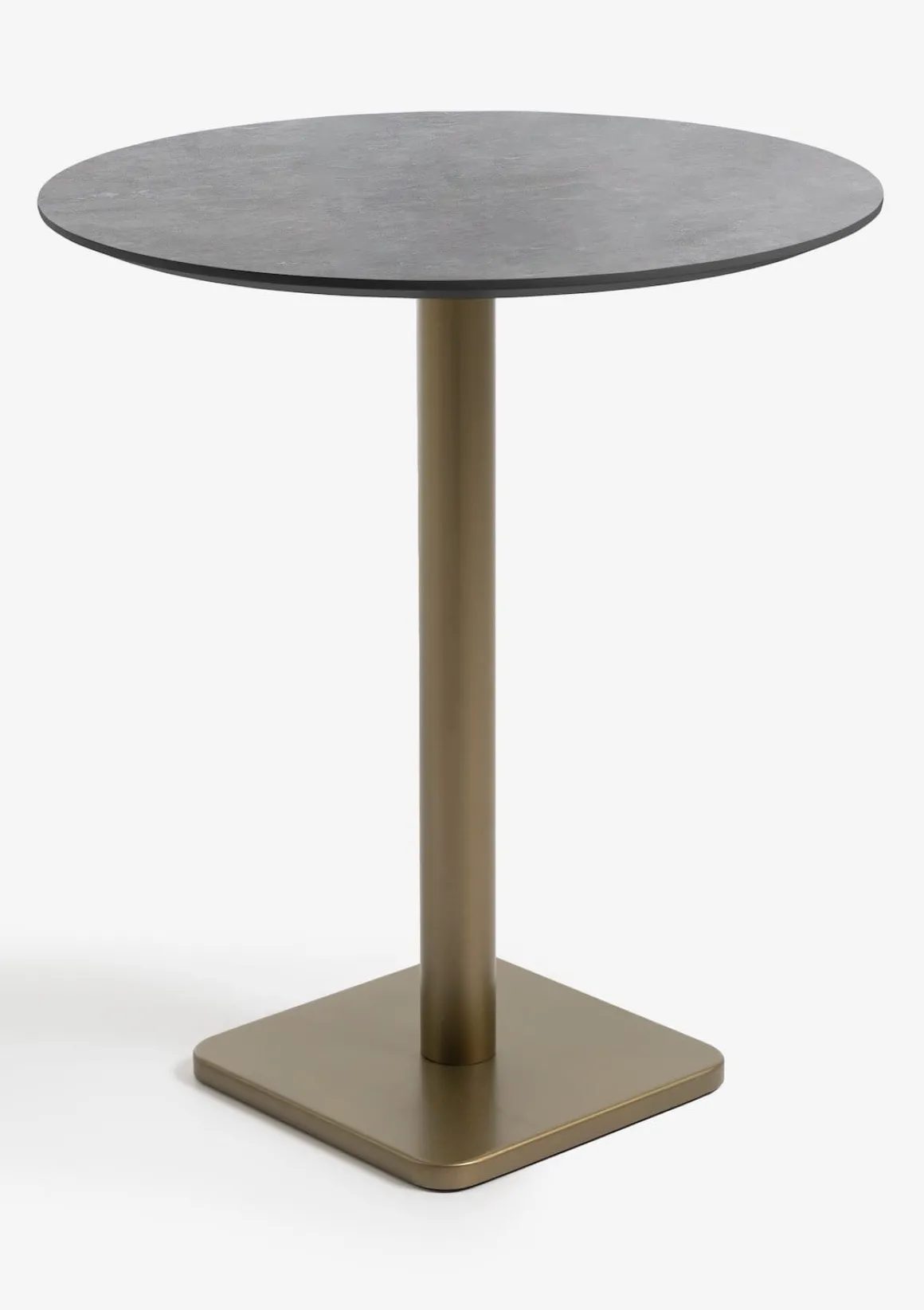 Klein (eet-)hoekje inrichten? COCOmaison heeft dé oplossing voor je! In onze Brest-serie vind je namelijk heel veel leuke bistro- en bartafeltjes. De tafels hebben allemaal een metalen poot, die verkrijgbaar is in goud of zwart en een blad van eikenhout, steen of marmer. Je kunt daarnaast telkens kiezen uit een ronde, vierkant of rechthoekige variant. Door al die verschillende uitvoeringen kun je uit maar liefst verschillende 72 tafeltjes kiezen! Superhandig én stijlvol dus! Dit is de ronde bartafel met een diameter van 80 cm, een goudkleurige poot en een blad van steen in kleur antraciet.