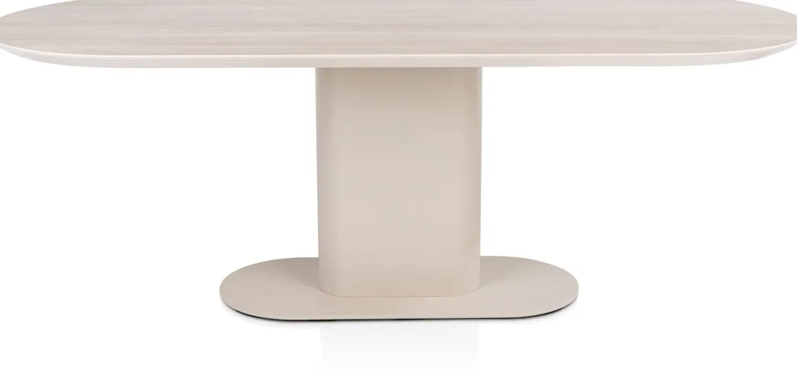 Brianto, eetkamertafel 210 x 100 cm – keramiek blad Travertin – Creme