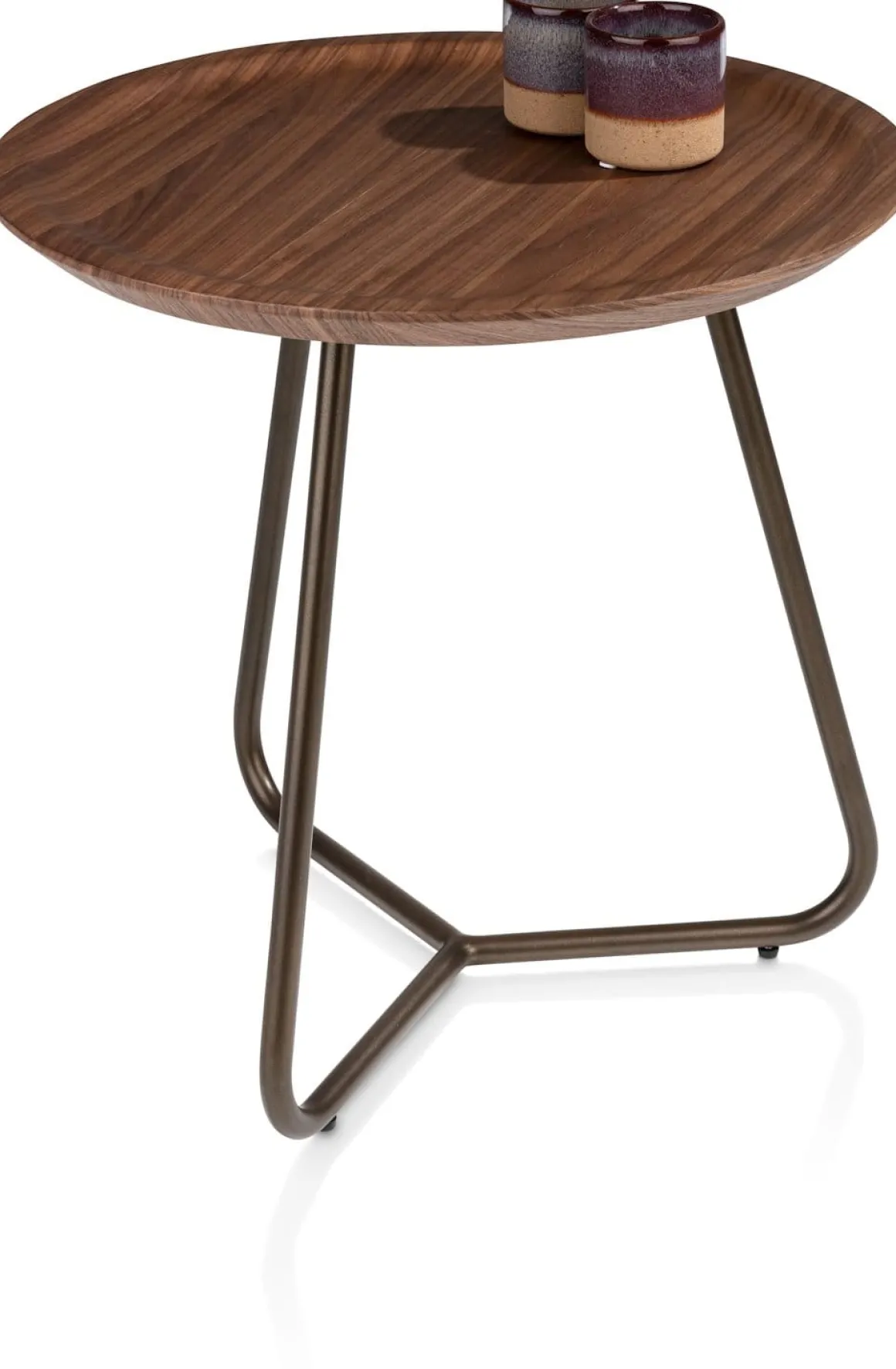 Maak jouw zithoek compleet met de BRIANZA bijzettafel. Het blad is uitgevoerd in gelakt notenfineer en benadrukt de warme, stijlvolle uitstraling van deze collectie. De subtiele verjongde rand geeft de tafel een lichte look, terwijl het ranke metalen draadframe voor een moderne en luchtige basis zorgt. Dankzij zijn compacte formaat is de bijzettafel ideaal naast de bank of fauteuil, maar ook handig als extra tafeltje in je interieur. Combineer hem met de eetkamertafel en salontafel uit dezelfde serie voor een harmonieus geheel. Met de BRIANZA spiegel en de kasten uit deze collectie trek je de elegante look moeiteloos door in de hele ruimte.