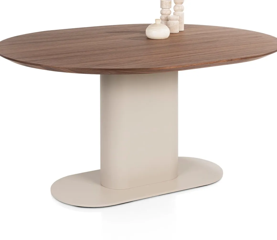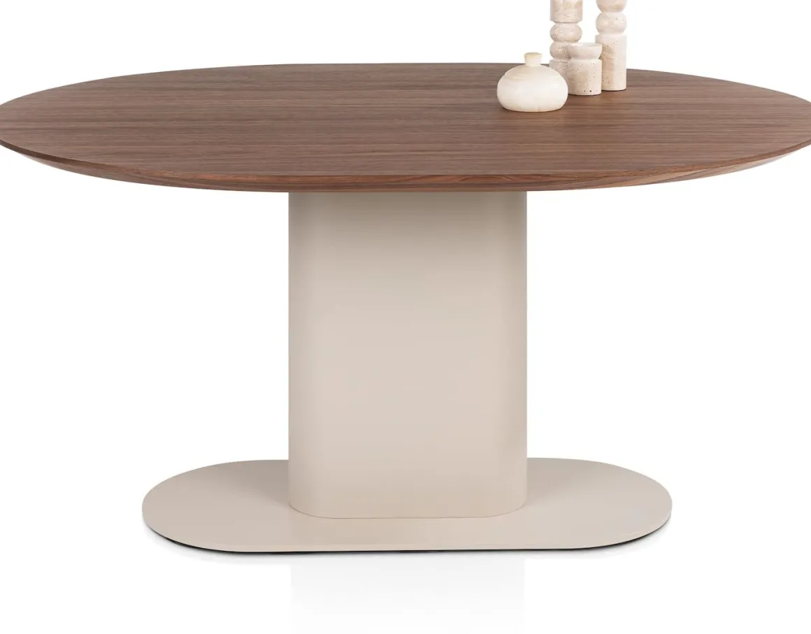 Creëer een intieme eetplek met eetkamertafel BRIANZA van 150 x 120 cm. Het ovalen blad in warm walnootfineer heeft een verjongde rand die het design luchtig maakt. De ronde vormen vloeien samen met de ellipsvormige kolompoot in crèmekleur, die door de verzwaarde kern optimale stabiliteit biedt. Deze combinatie van stijlvol en functioneel maakt BRIANZA perfect voor elke woonruimte. Verkrijgbaar in meerdere formaten én ook met een steelbrown poot voor een krachtiger accent. Ontdek de andere tafels en kasten uit de BRIANZA collectie en ervaar hoe eigentijdse elegantie jouw interieur naar een hoger niveau tilt.