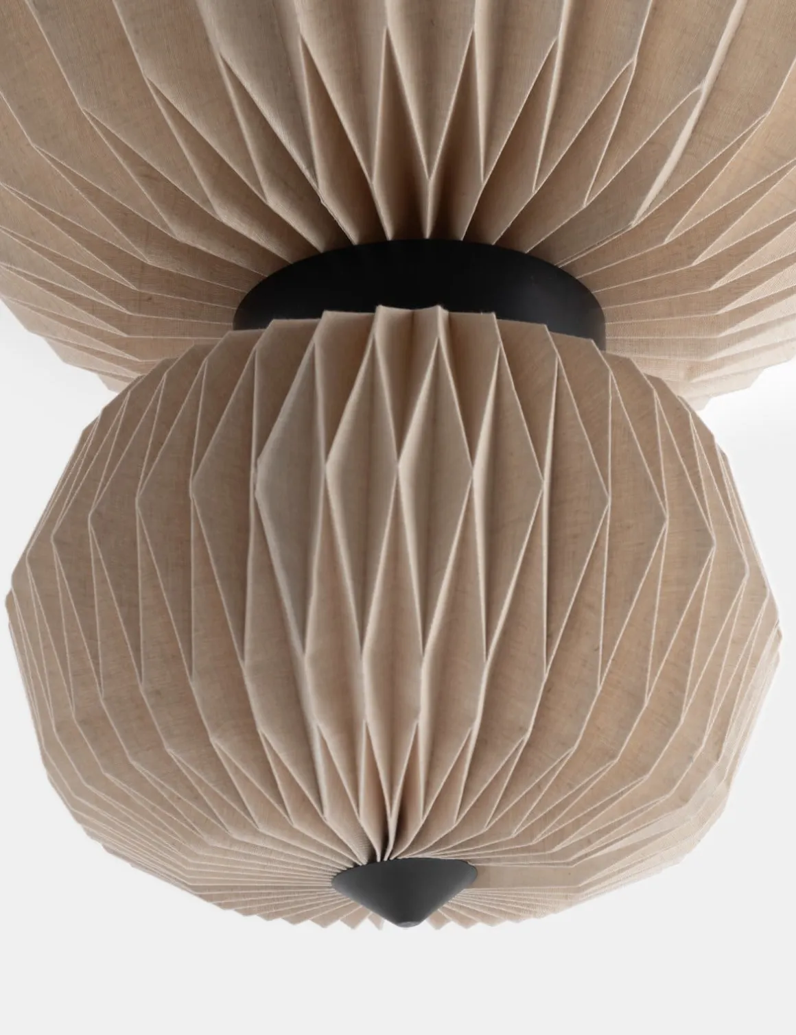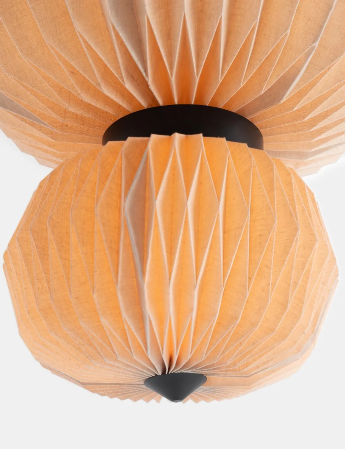 COCOmaison is dol op verrassende ontwerpen en dat zie je zeker terug in de Rikke hanglamp. Hij bestaat uit 2 bollen, een grote en een wat kleinere. Beide zijn gemaakt van stevig papier dat als smockwerk gevouwen is. Daarmee krijgt de lamp een origami-achtige uitstraling die helemaal past in de Japandi woonstijl. De hoogte is 70cm en de doorsnede 60cm, maar het is vooral het materiaal dat opvalt. Het papier heeft een naturel kleur en is semi-transparant, zodat de lamp een prachtig gedempt warm licht verspreidt als hij aan is. Maar ook als hij overdag uit is, is het een opvallend design object in huis. De hanglamp bestaat ook in een net iets andere uitvoering die je onderling mooi kunt combineren boven een wat grotere tafel.