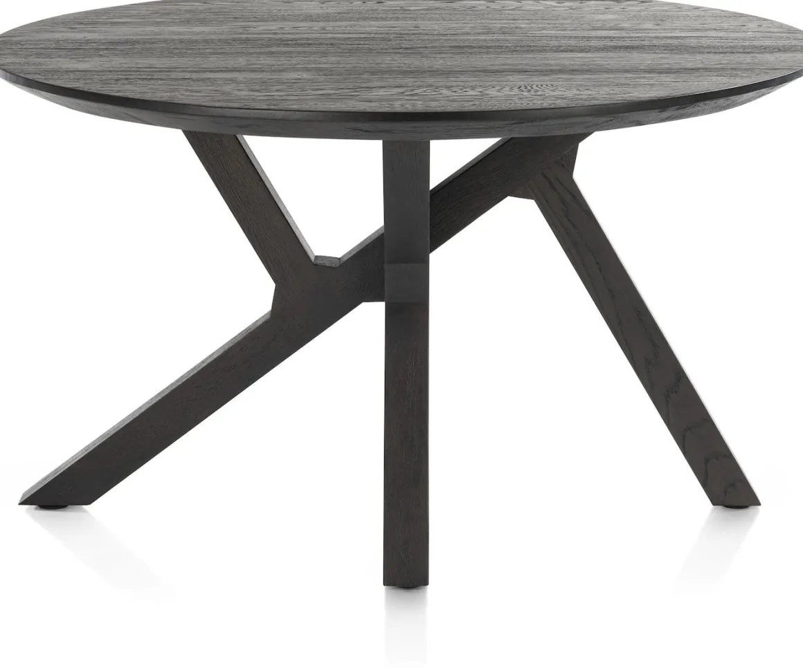 Met COSENZA haal je een ronde houten eetkamertafel met karakter in huis. Deze tafel met asymmetrische kruispoot is namelijk volledig gemaakt van massief eikenhout, inclusief zichtbare houtnerven en knoesten. Hij heeft een diameter van 130 cm en je kunt kiezen uit 2 kleuren: naturel en onyx. COSENZA is er in verschillende vormen en afmetingen; deze ronde variant is ruimtebesparend en biedt volop zitplaatsen. Wist je dat hij er ook is in de vorm van een bartafel?