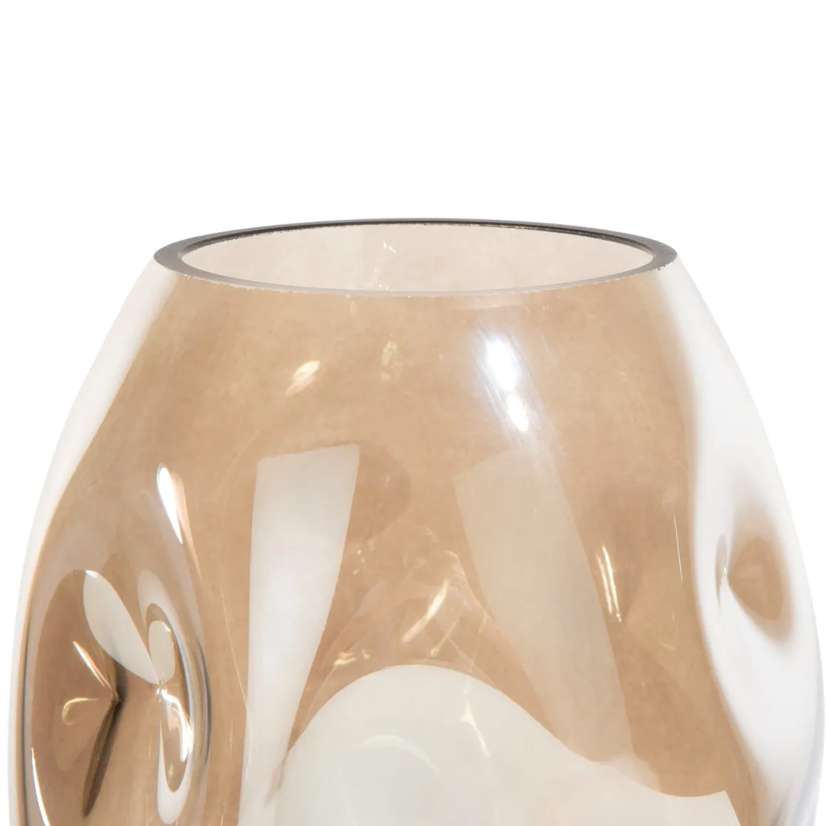 Deze grijze vaas DON mag met recht een klein kunstwerk genoemd worden. Deze glazen vaas is bijzonder dankzij de ‘deuken’ in de zijkant en het glanseffect dat de vaas een extra luxe uitstraling geeft. Vaas DON is 19 cm hoog en laat zich leuk combineren met de kleinere en de grotere vazen DON uit deze serie. Leuk met een mooi bosje (droog)bloemen erin!