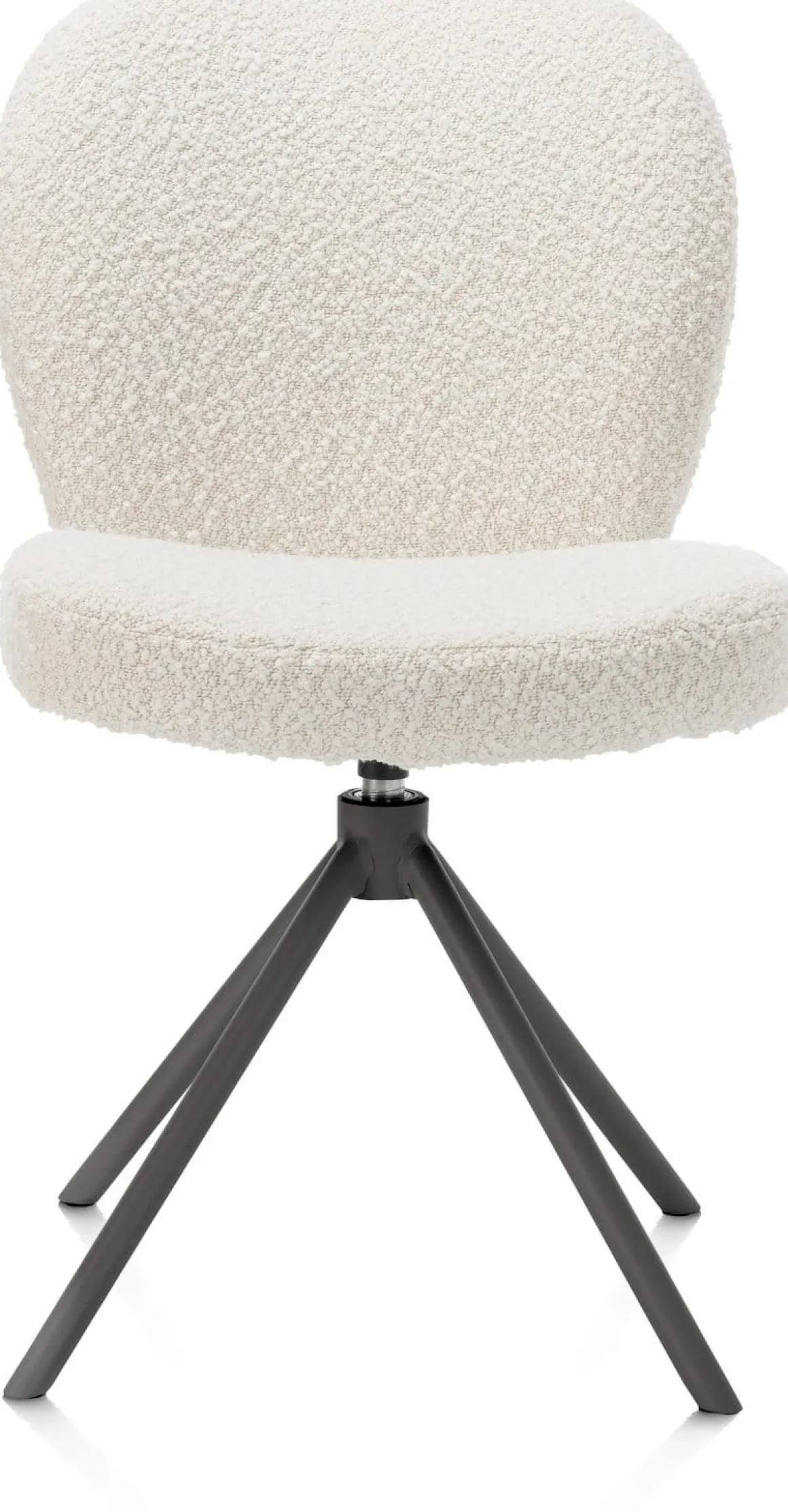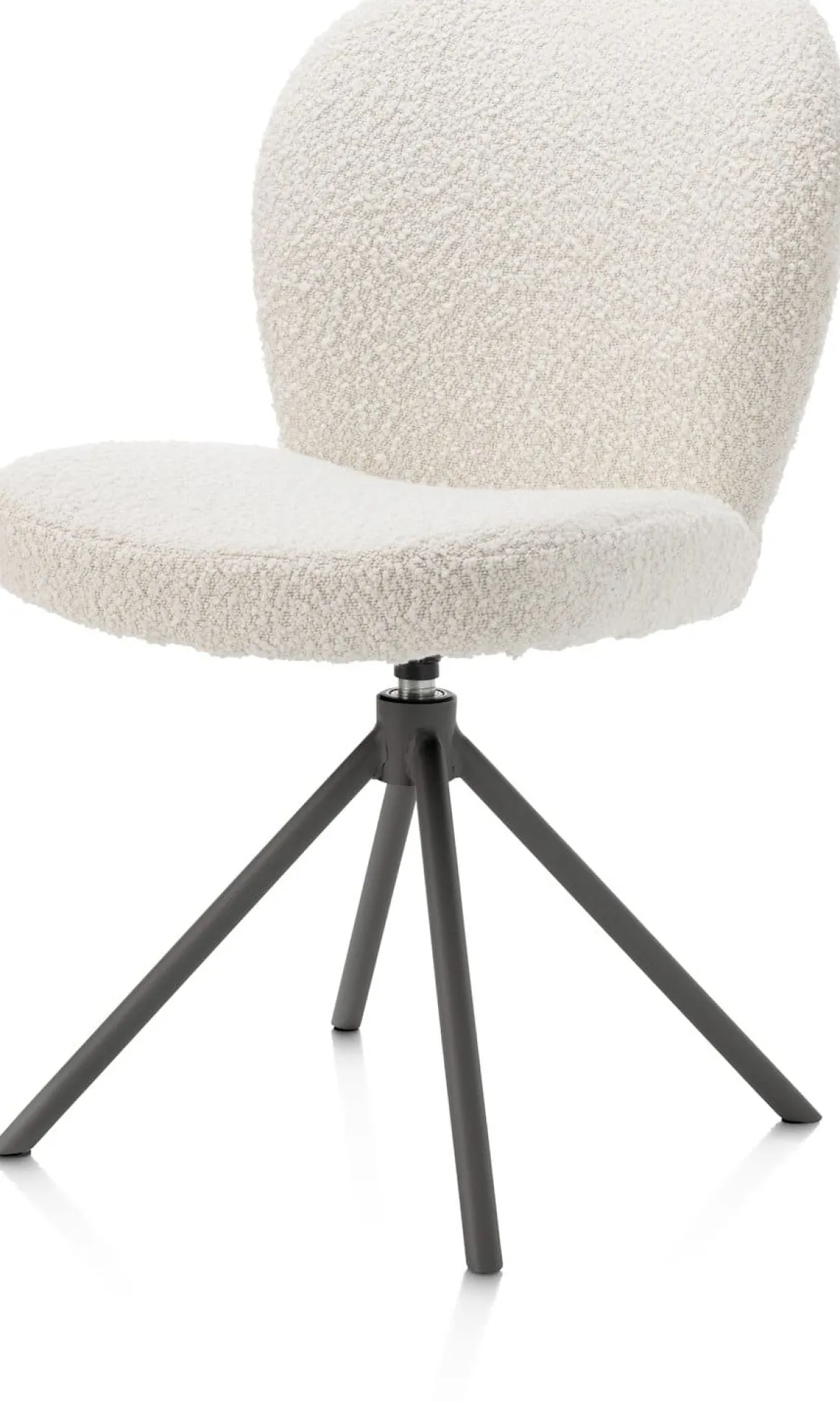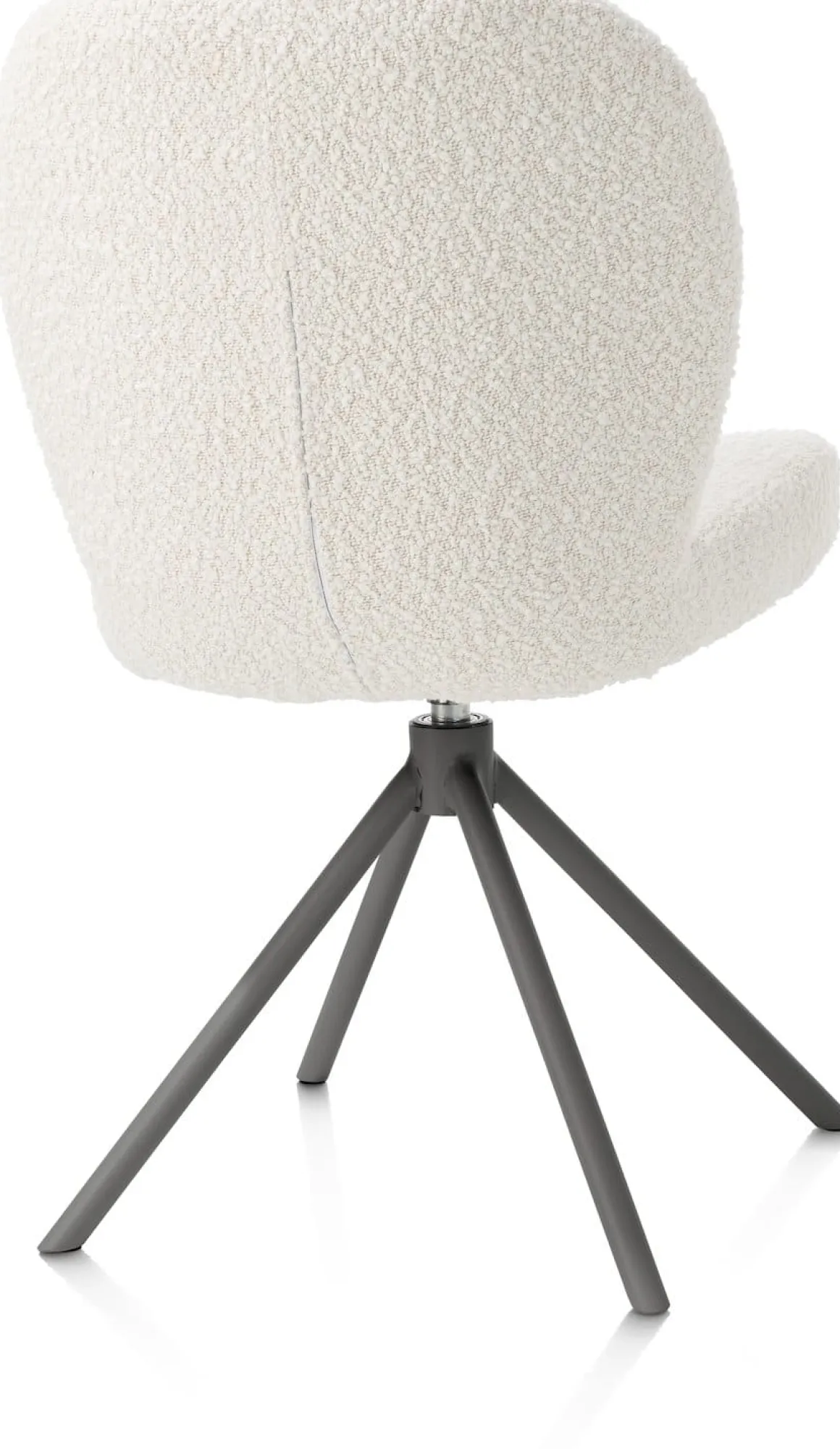 Ben je op zoek naar een moderne draaibare eetkamerstoel? Kijk dan eens naar deze aaibare eetkamerstoel JAXON van XOOON. JAXON is bekleed met de grove, heerlijk zachte bouclé stof Brioni. Naast deze ivoorkleurige uitvoering shop je deze wolk van een eetkamerstoel ook in de kleuren kiezel en lever. Mix en match de verschillende kleuren voor een speels effect aan je eettafel. JAXON is 180 graden draaibaar en heeft een terugdraaifunctie. Hij staat op een centrale 4-poot in de kleur grafiet. Naar wens is hij ook verkrijgbaar als armstoel.