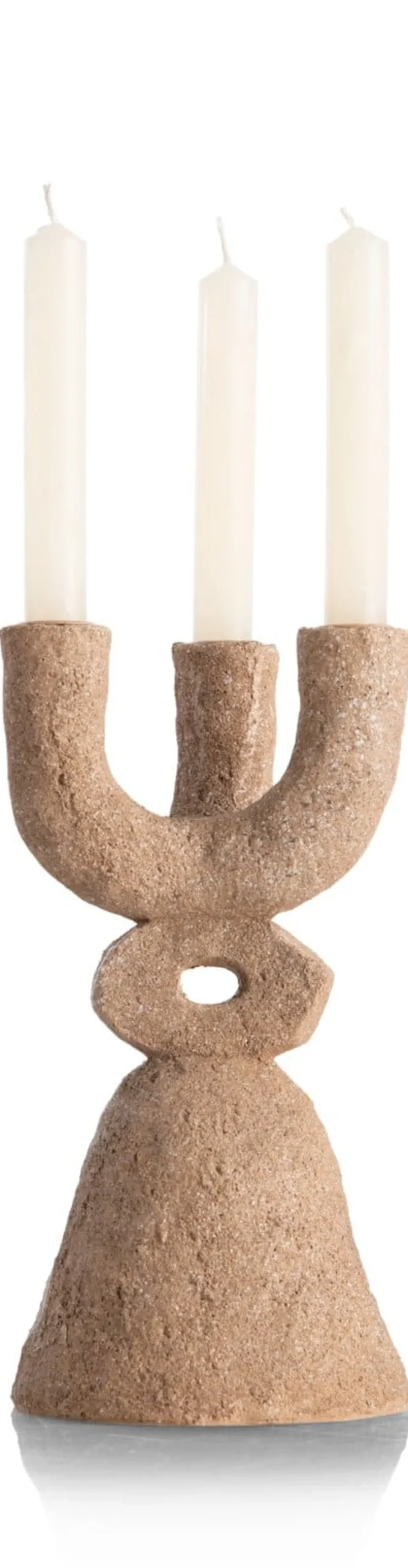 De kandelaar JUNE van COCOmaison lijkt een archeologische vondst van een oude beschaving. Met zijn pure, ambachtelijke design past hij echter helemaal in de laatste interieurtrends. Hij heeft een ruwe steenlook en een lichtbeige kleur. De kandelaar is 27 cm hoog en is geschikt voor 3 dinerkaarsen. Wil je de kandelaar extra laten shinen, kies dan ook kaarsen in een bijzondere vorm of kleur. JUNE is ook verkrijgbaar in een iets hogere uitvoering waarin 2 kaarsen passen.