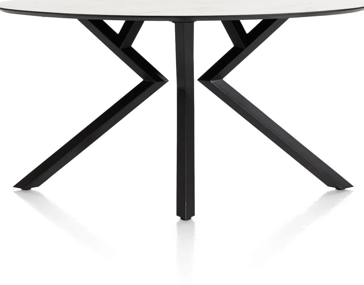blad in Primo Laminato (HPL) – marmerlook wit – onderstel in metaal, zwart