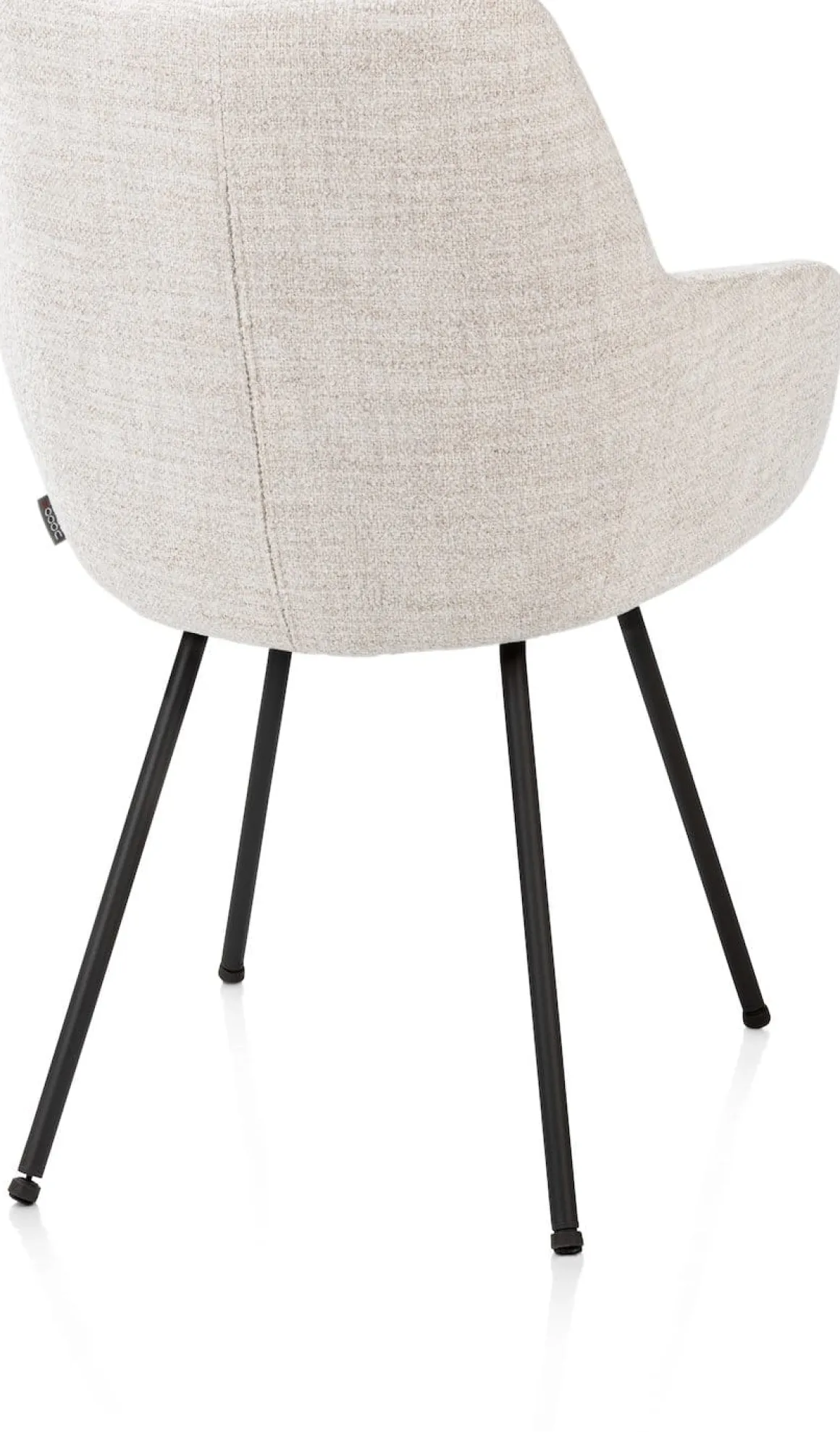 Ben je op zoek naar een moderne armstoel, dan is armstoel MATS de ideale stoel voor jou. Met haar crèmekleurige bekleding en rough off black poten past deze stoel in elk interieur. MATS heeft mooie ronde vormen. De metalen poten en zachte bekleding in stof Luton, geven de stoel een trendy look. Dankzij de comfortabele armleuningen en heerlijke zit, leent MATS zich om uren te tafelen. Hij is makkelijk onder de tafel te schuiven en verkrijgbaar in verschillende uitvoeringen qua kleur, bekleding en onderstel.