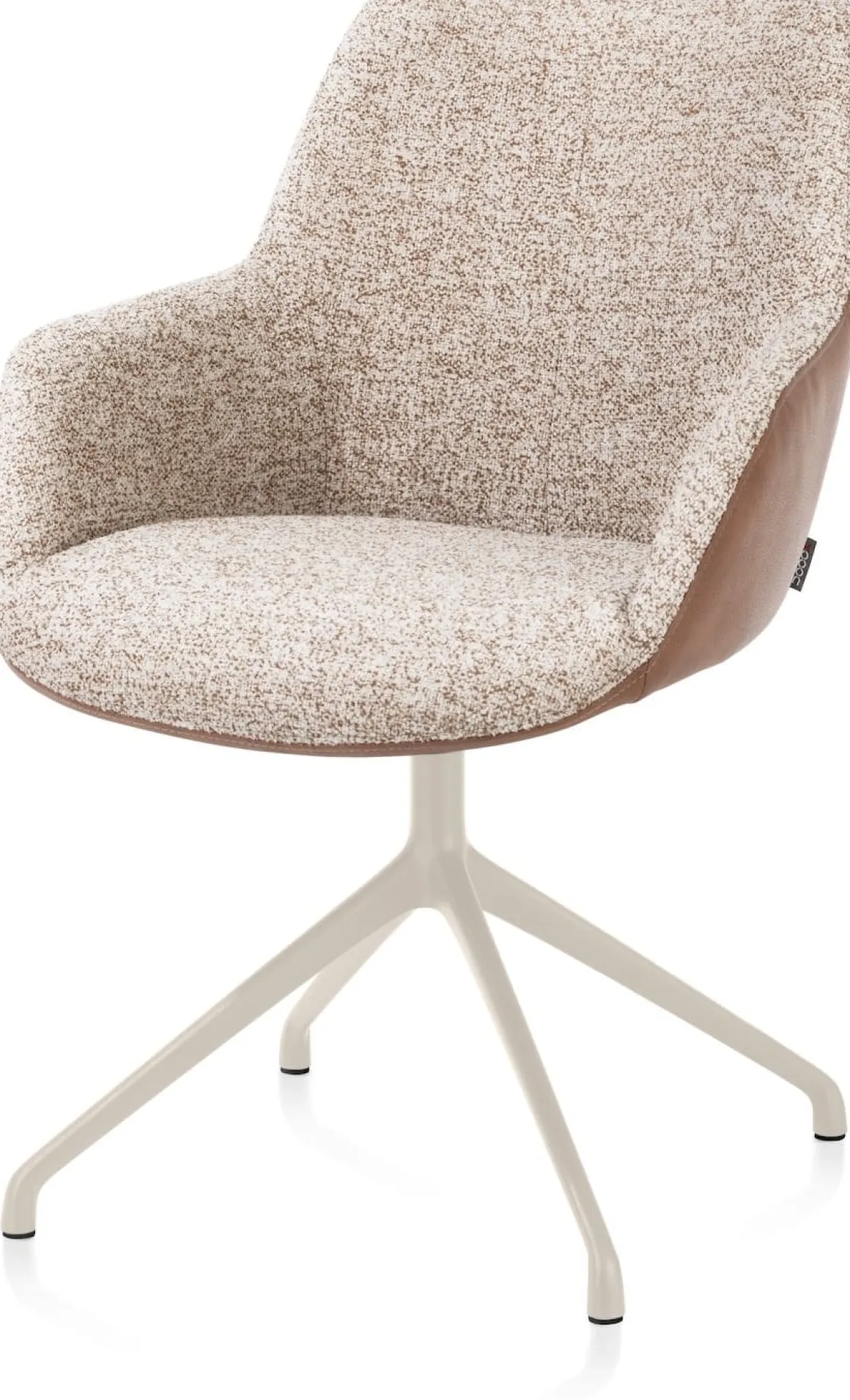 De MATS armstoel in combi Pala cognac + Luton koper is een stijlvolle en praktische keuze voor je eetkamer. Deze uitvoering heeft een aluminium 4-poots frame in crèmekleur dat 360° draaibaar is. Zo geniet je niet alleen van een moderne uitstraling, maar ook van extra gebruiksgemak. De combinatie van twee stoffen geeft de stoel een unieke en luxe look, terwijl de ronde vormen en armleuningen garant staan voor comfort. Perfect om urenlang aan tafel te zitten. Armstoel MATS is verkrijgbaar in verschillende varianten, zodat je eenvoudig jouw ideale uitvoering vindt.