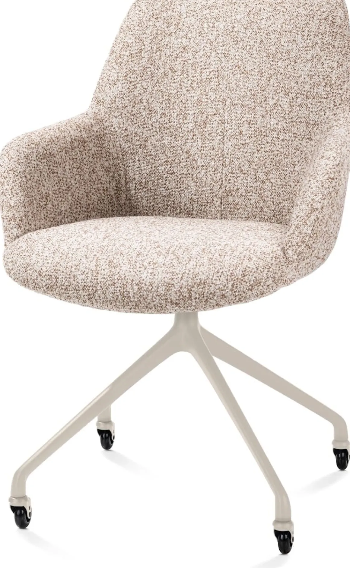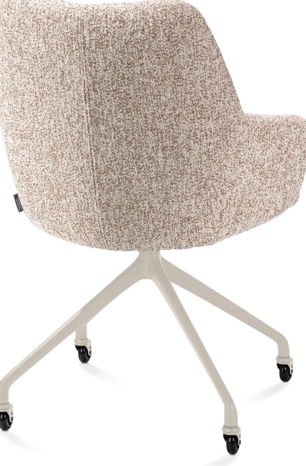 De MATS armstoel in koperkleur brengt warmte én gebruiksgemak samen. De stoel is bekleed met de aaibare stof Luton. Het aluminium frame in crèmekleur is voorzien van wieltjes, waardoor je de stoel moeiteloos verplaatst; ideaal voor dagelijks gebruik of flexibel wonen. Dankzij de ronde vormen, comfortabele armleuningen en ruime zitting is MATS perfect voor lange diners of ontspannen momenten. Het frisse frame geeft de stoel een moderne twist en laat de warme bekleding extra mooi uitkomen. Armstoel MATS is verkrijgbaar in diverse varianten.