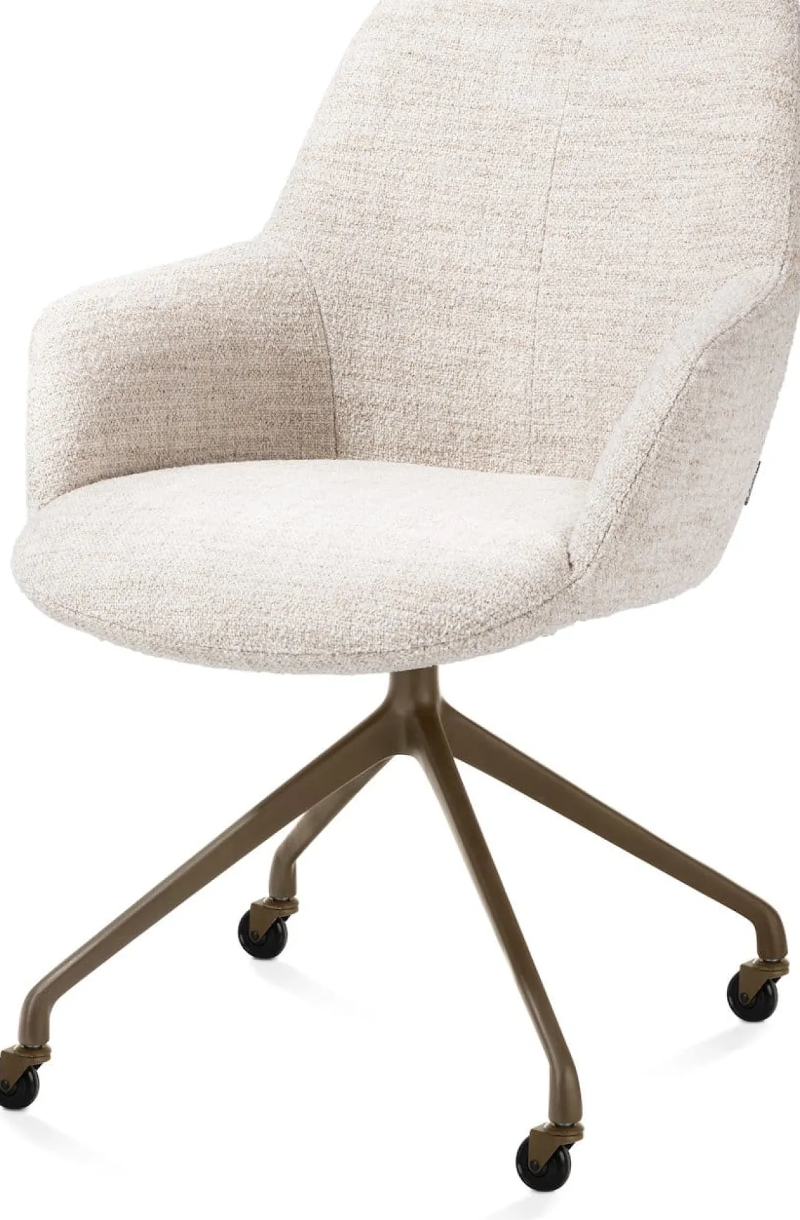 Mats, armstoel aluminium frame wielen steelbrown – stof Luton – Creme