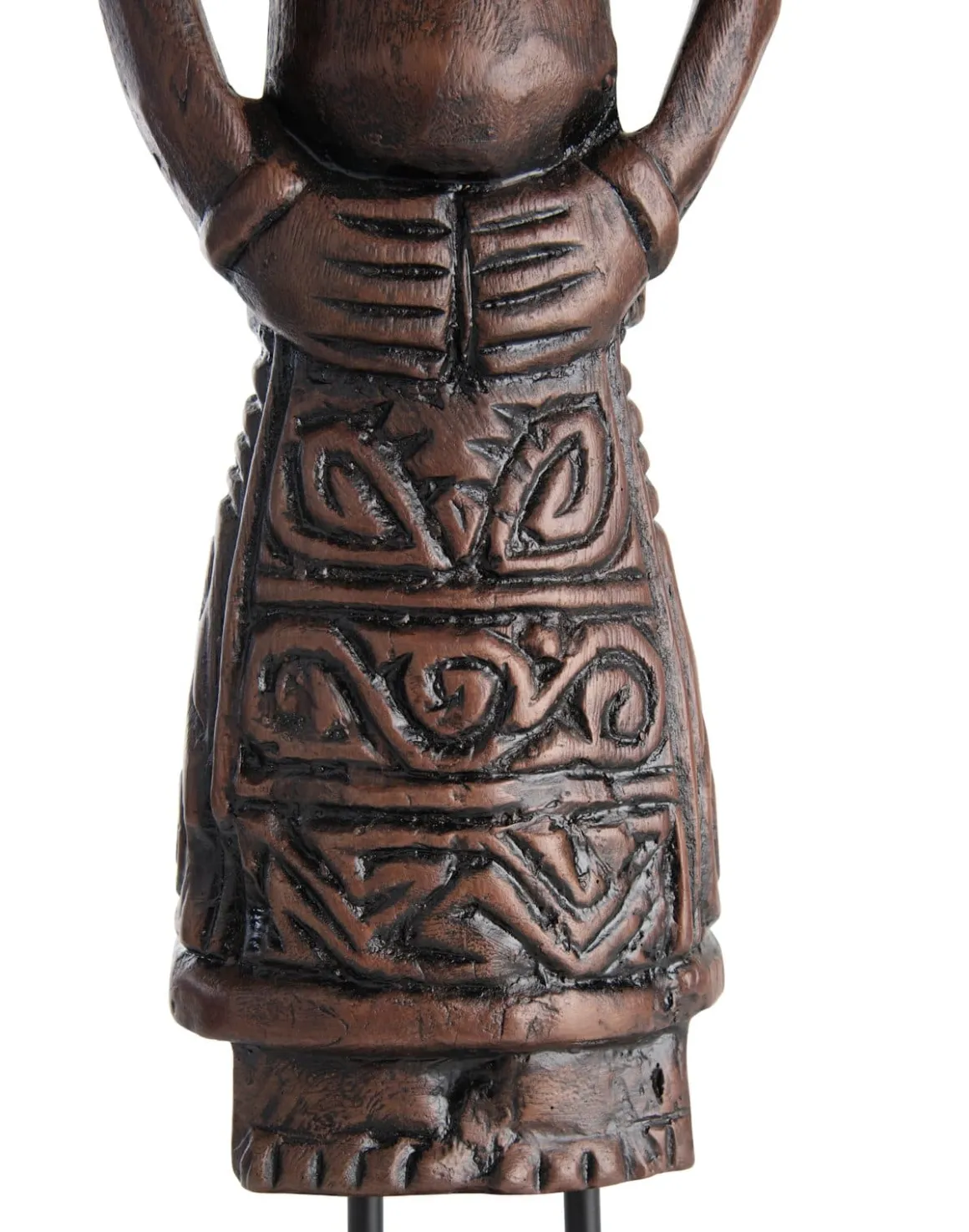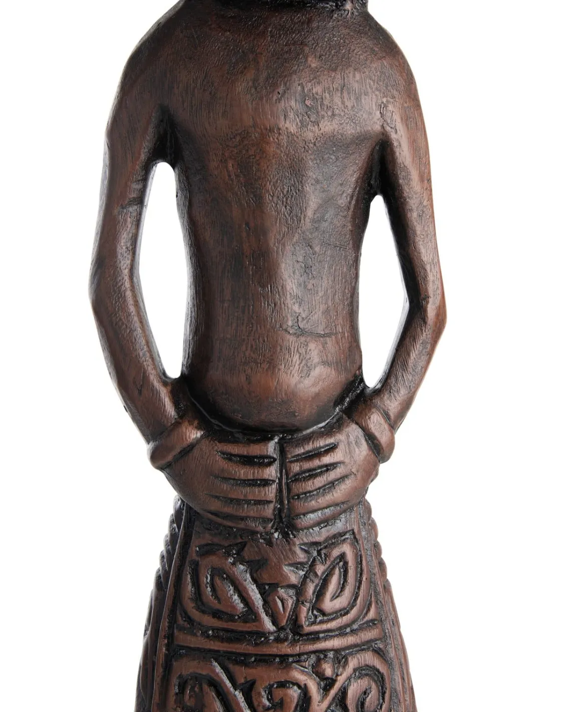 Dromen van verre oorden is altijd fijn toch? De beeldenserie MILAN van COCOmaison brengt je onmiddellijk in de sfeer van exotische plekken met witte stranden en zon in overvloed. Elk beeld is handgekerft uit lichte kunsthars en daardoor uniek. De beelden zijn donkerbruin en hebben een verweerde houtlook, waardoor je ze amper van originele houtsnijwerken kunt onderscheiden. Dit beeld is 68 cm groot, zijn ‘broertjes’ variëren in grootte van 62 tot 86 cm. Plaats er een of twee op een tafel of buffetkast en droom heerlijk verder tot je volgende vakantie!