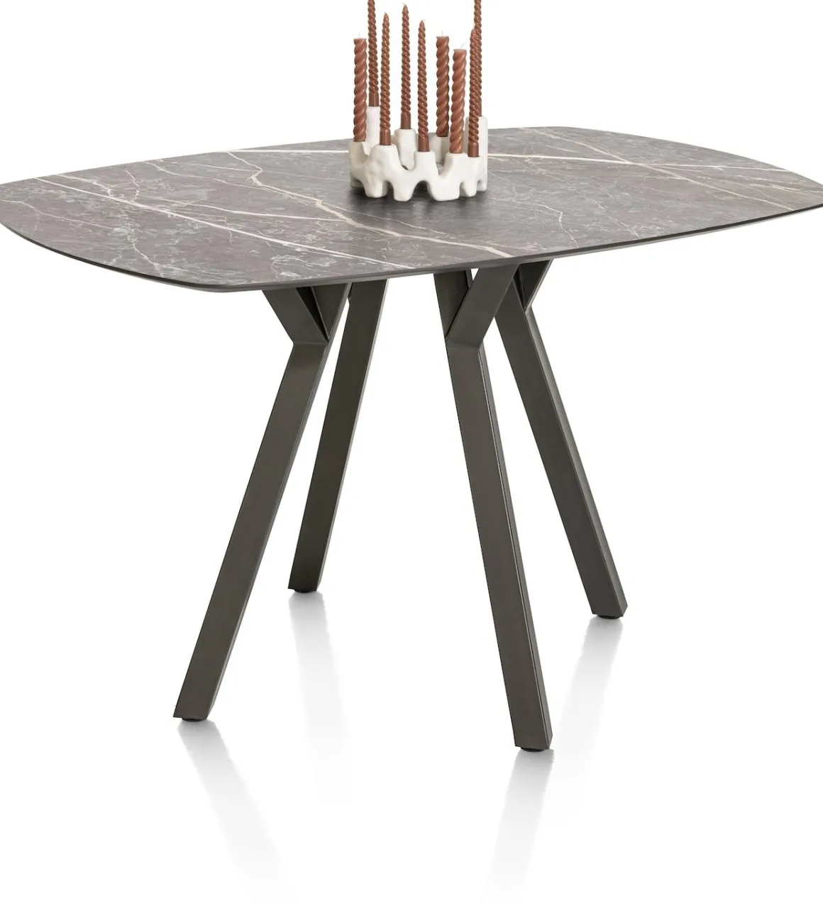 blad in Primo Laminato (HPL) – marmerlook lichtgrijs – onderstel in metaal, grafiet